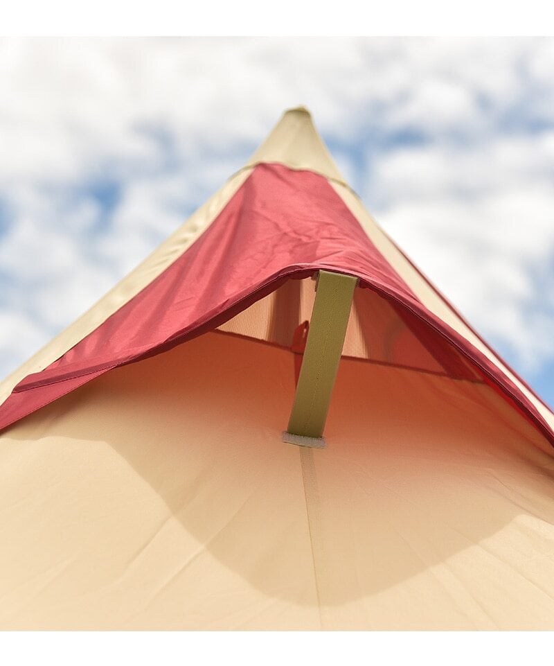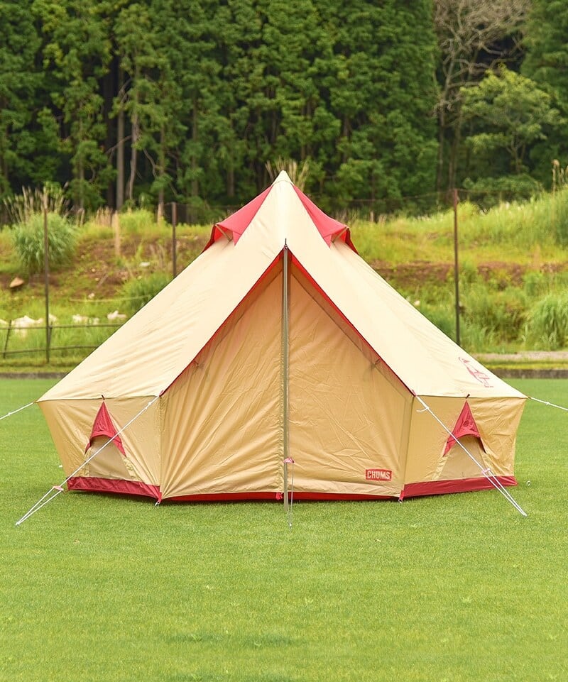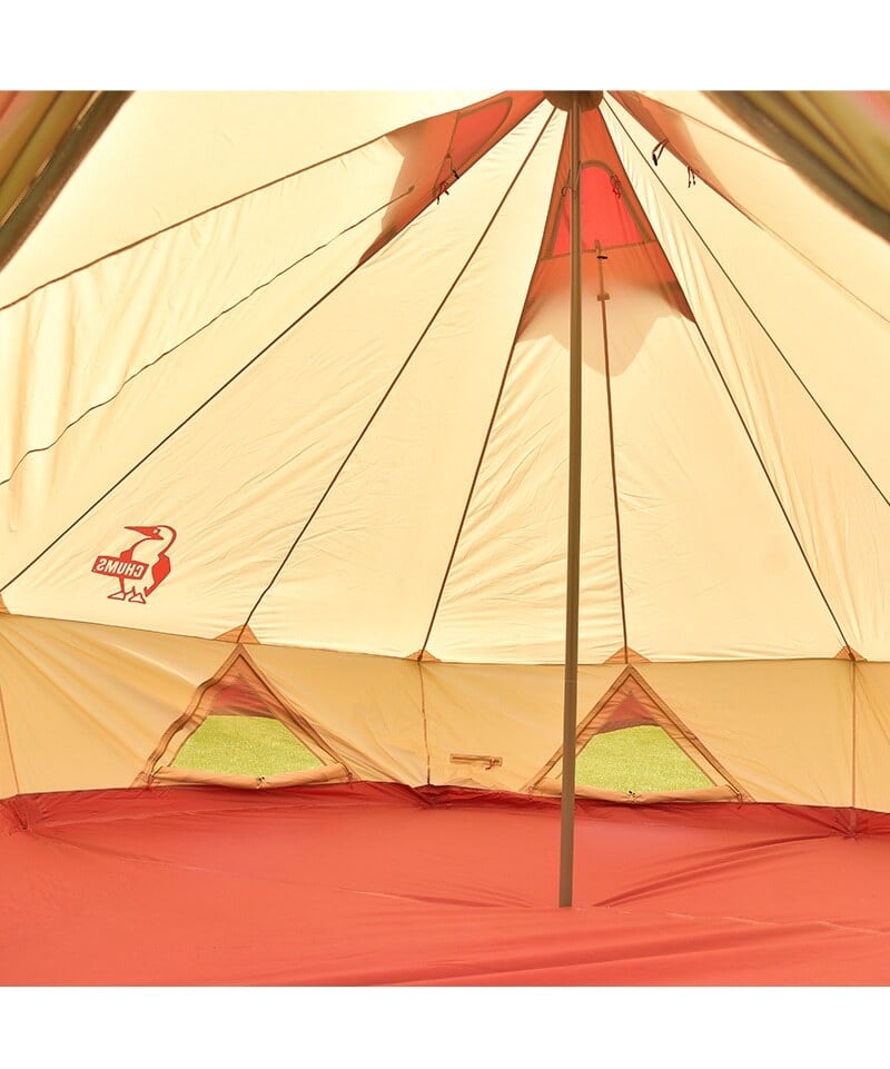 チャムスらしいカラーリングのお洒落なベル型テント。中央のポールをメインに立てて張るだけのシンプルな構造で、大きなテントながら簡単に設営可能。サイド部分が立ち上がっているので隅々までスペースを有効活用でき、高さもあるので、大人の方でもテント内で快適に過ごせます。