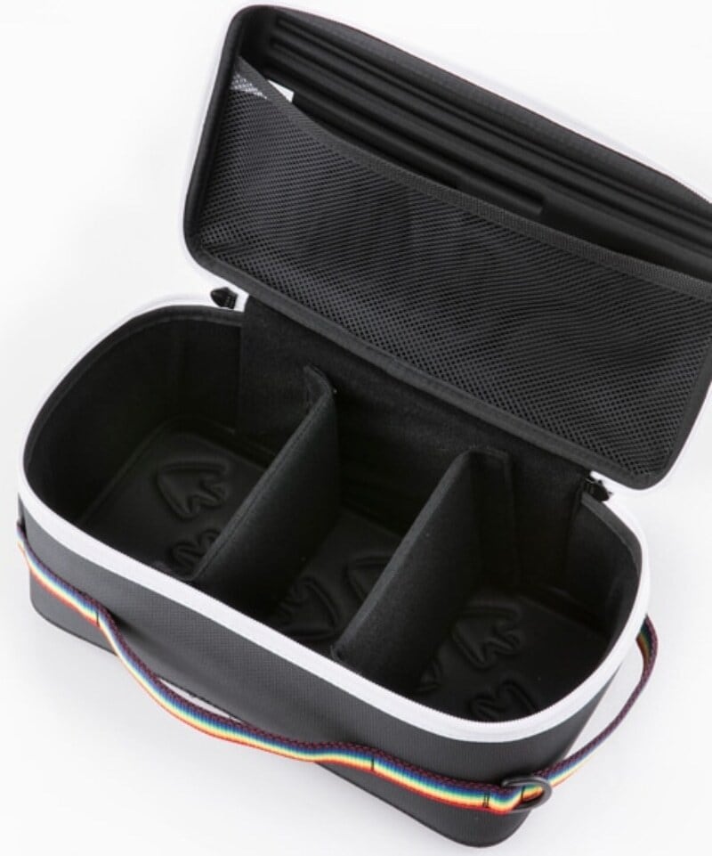 衝撃に強く、耐久性の高いEVA樹脂を使用したハードケース(Mサイズ)。内側の側面にはマイクロフリースを採用しているのでクッション性もあり、衝撃から中身を守ってくれます。Mサイズはキャンプ用の食器・カトラリーやバーナーなどをまとめて入れたり、一眼レフカメラの収納、ペグケースにもおすすめ。
