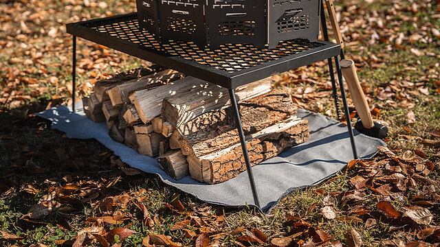 地面を守る不燃性スパッタシートで、焚き火を安心して楽しめるアイテム。