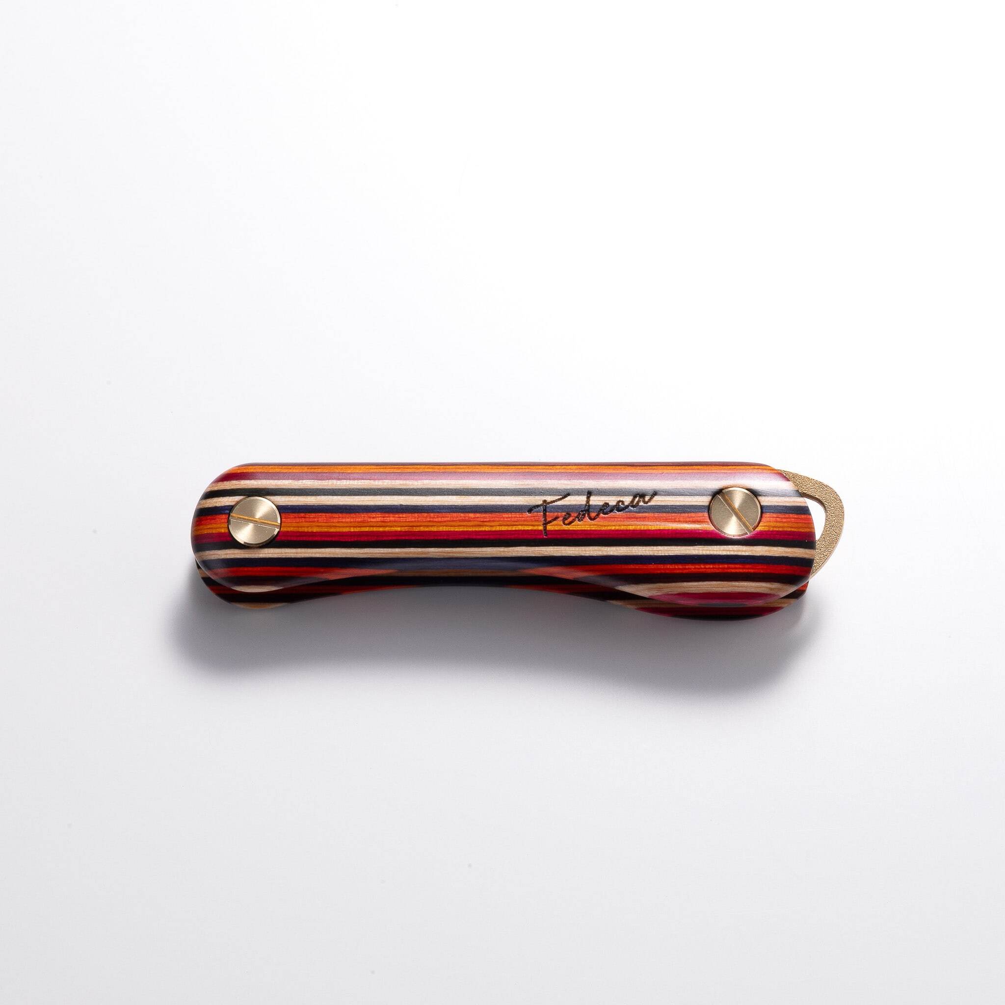 ナイフは、人の手で扱う道具だからこそ、手にしっくりくる形が求められます。私たち FEDECAは、そんな「手に馴染む ものづくり」を大切にしてきました。その想いを、ナイフ以外のかたちで表現したのが、この『FEDECAキーオーガナイザー』です。