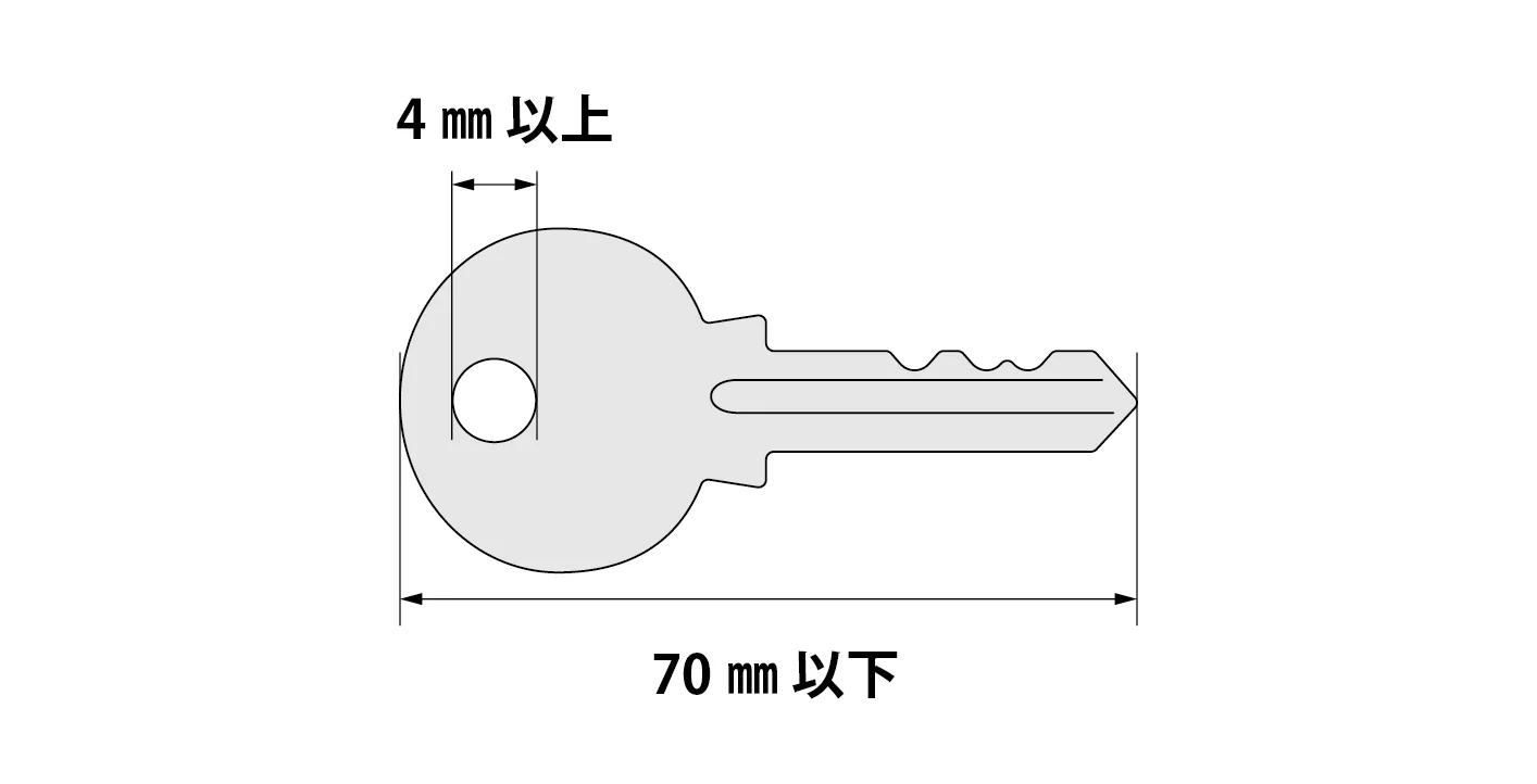 ※穴径4㎜以上、約70㎜以下の鍵が装着可能です。