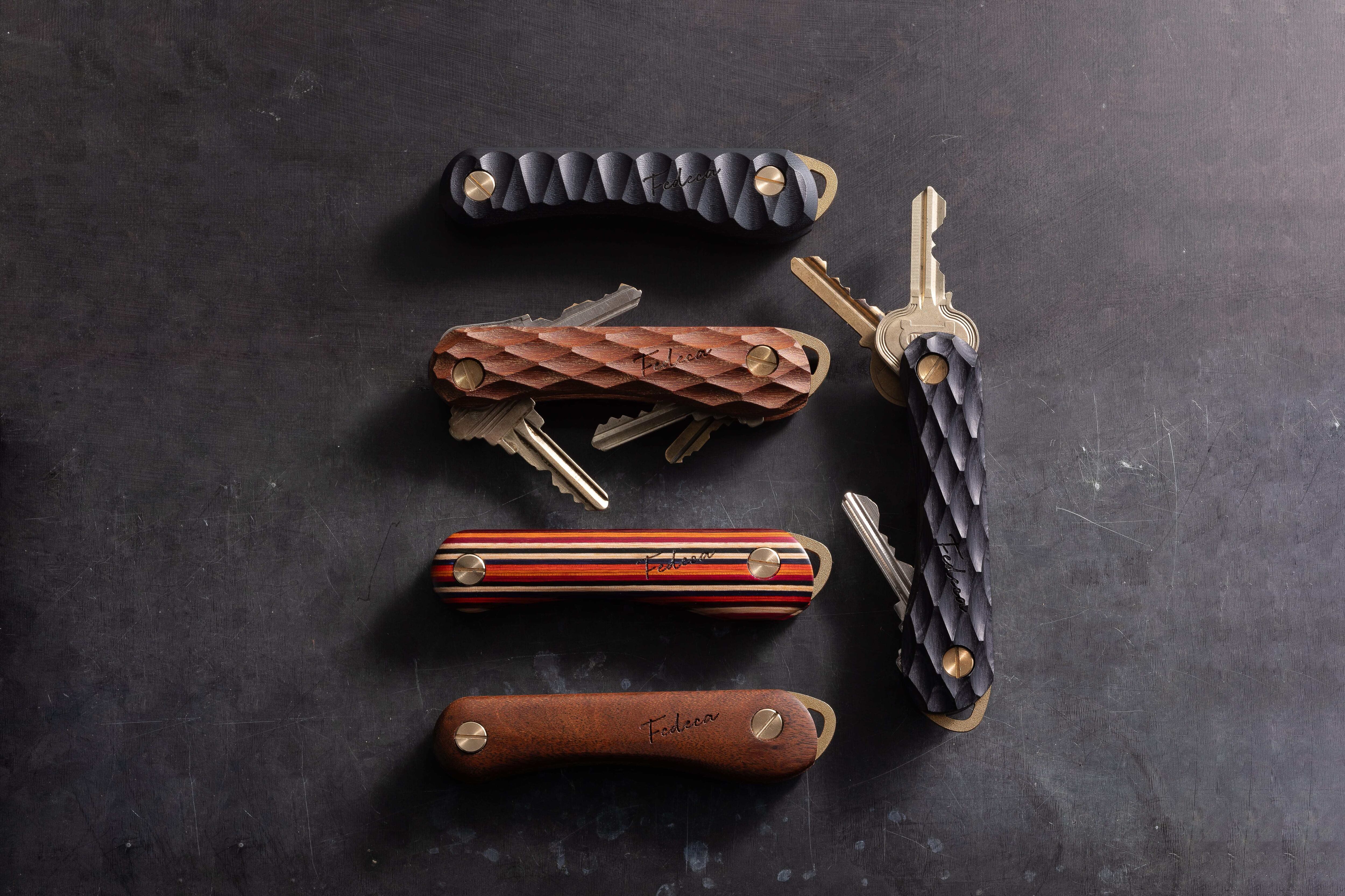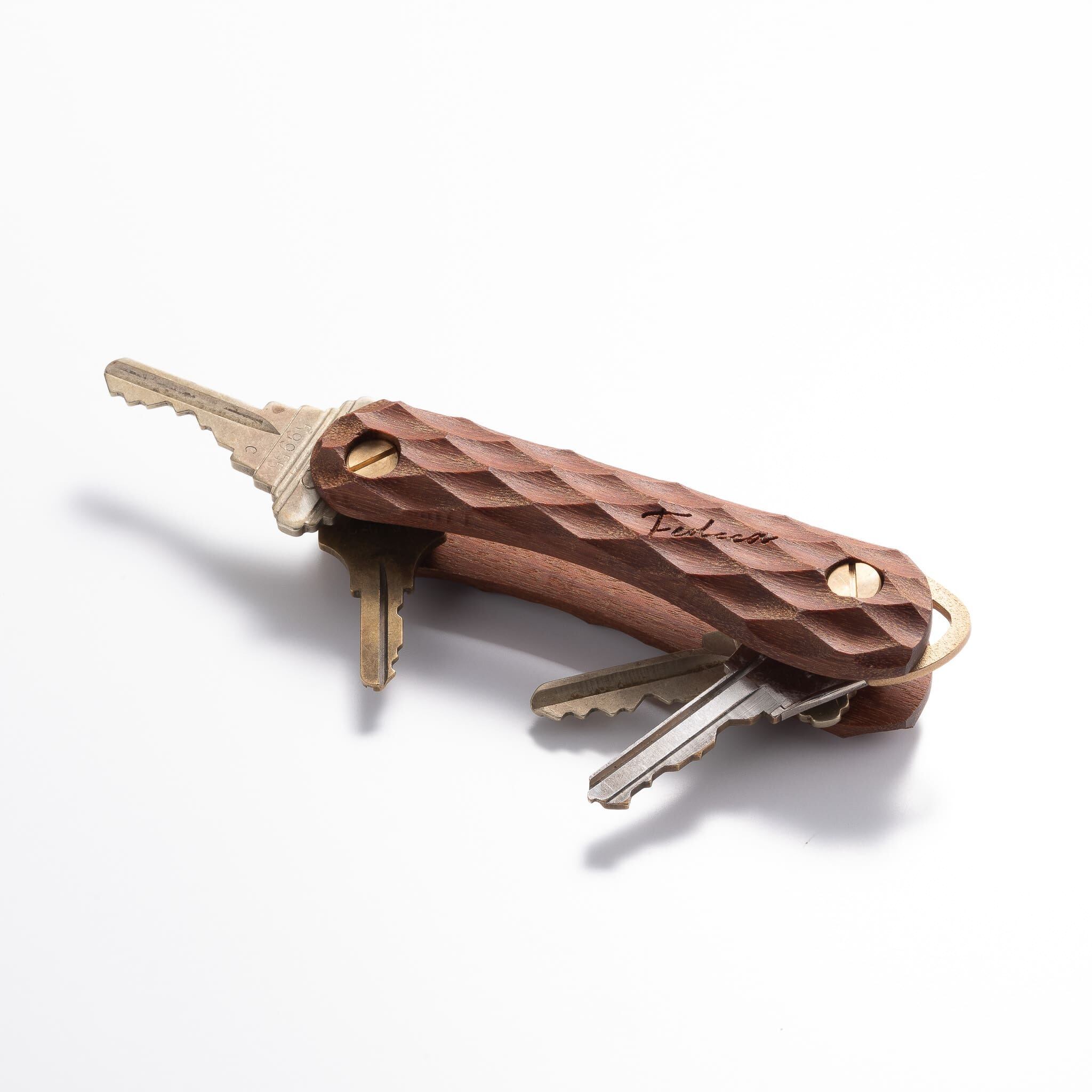 ナイフは、人の手で扱う道具だからこそ、手にしっくりくる形が求められます。私たち FEDECAは、そんな「手に馴染む ものづくり」を大切にしてきました。その想いを、ナイフ以外のかたちで表現したのが、この『FEDECAキーオーガナイザー』です。