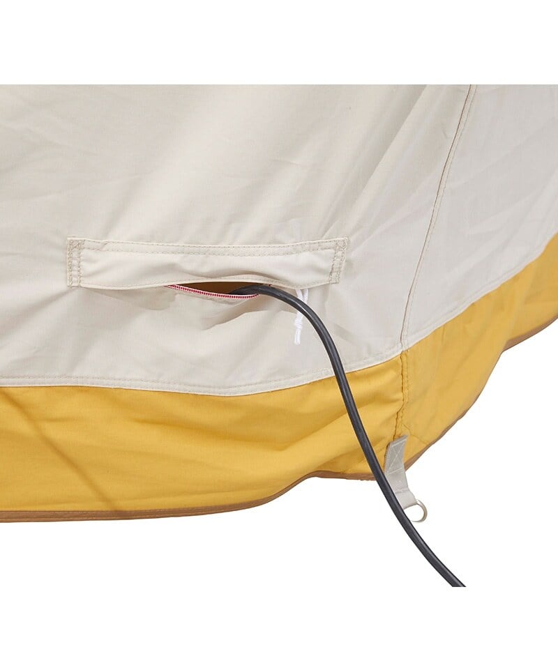 T/C素材(ポリエステル・コットン)を使用したお洒落なベル型テント。中央のポールをメインに立てて張るだけのシンプルな構造で、大きなテントながら簡単に設営可能。サイド部分が立ち上がっているので隅々までスペースを有効活用でき、高さもあるので、大人の方でもテント内で快適に過ごせます。