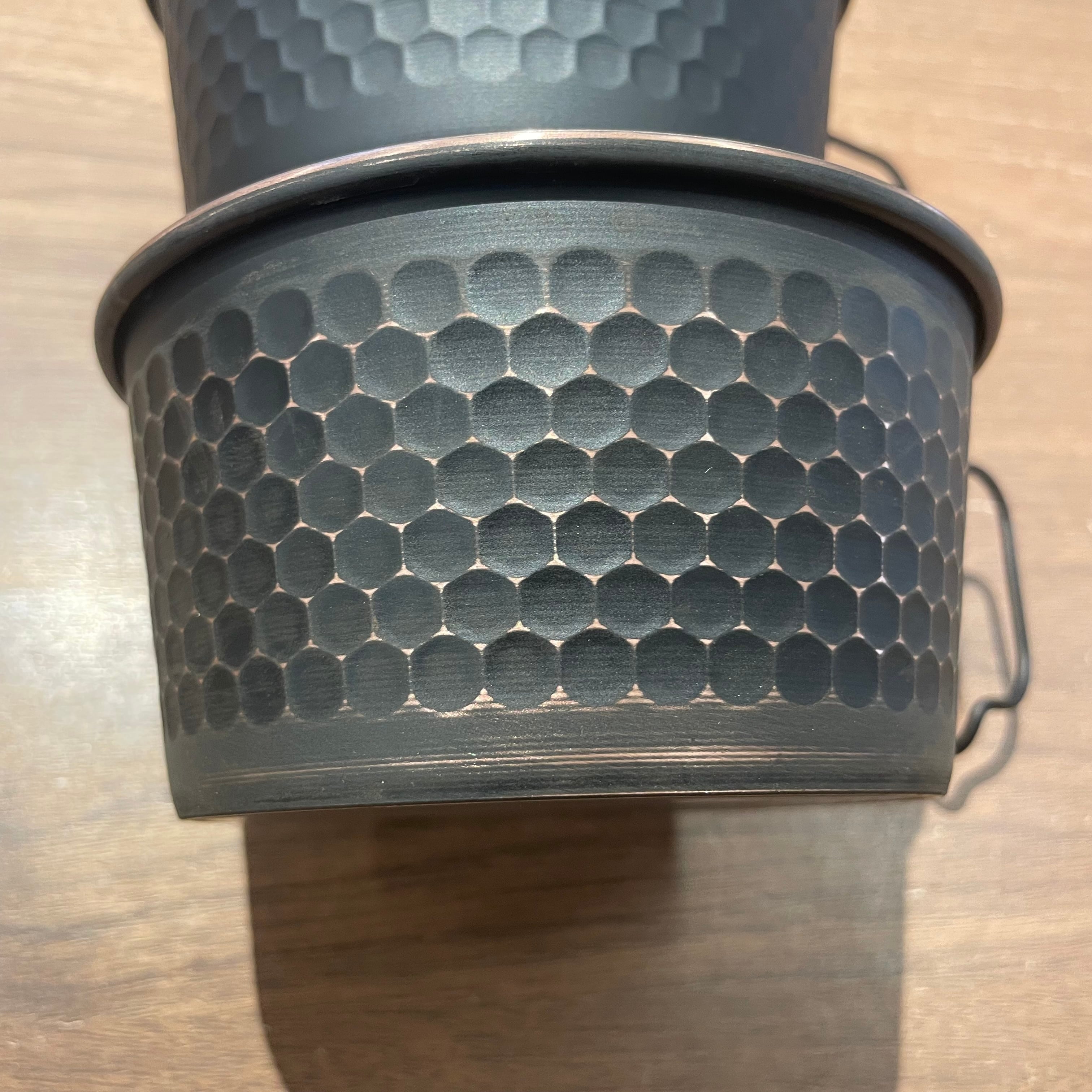 職人さんに一つずつへら絞りで作ってもらった後、さらなる工程で黒塗装を施してみました。