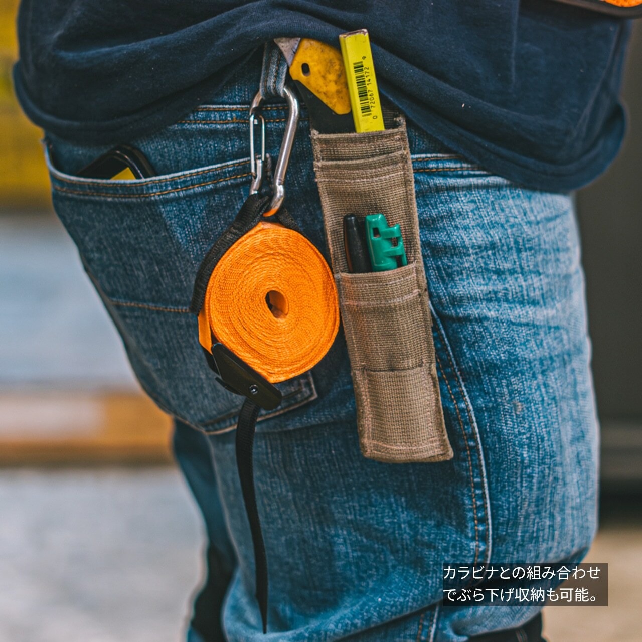 「フィックスストラップ」ならきれいに収納でき、カラビナと組み合わせれば持ち運びやぶら下げ収納も可能です。