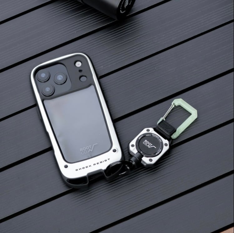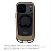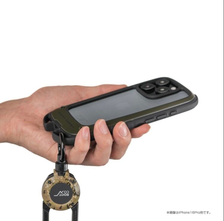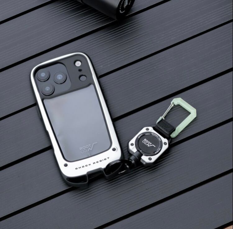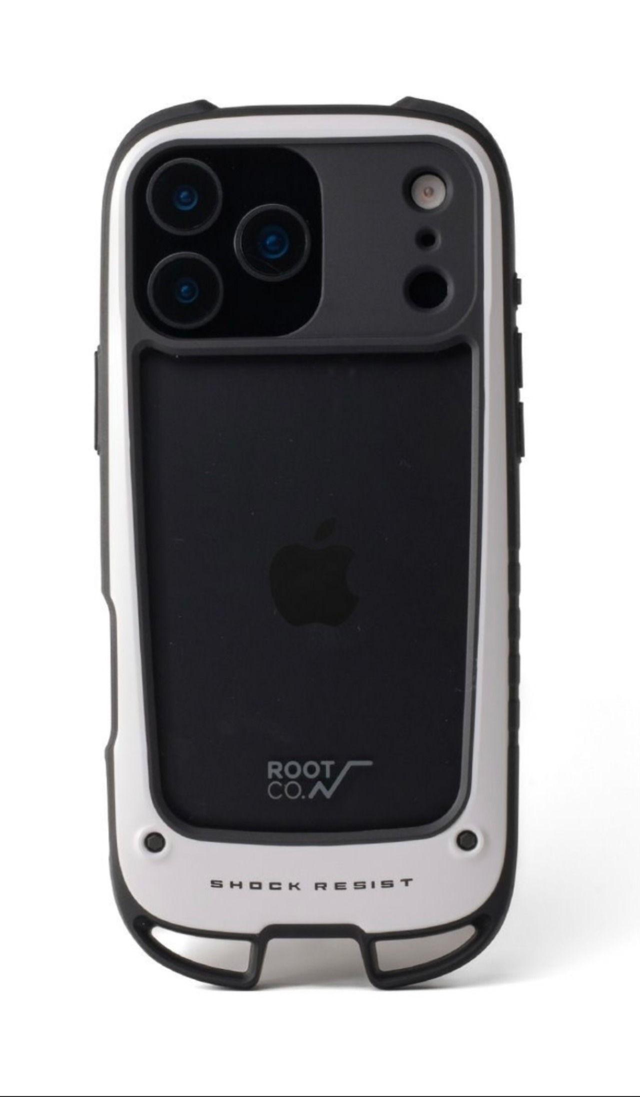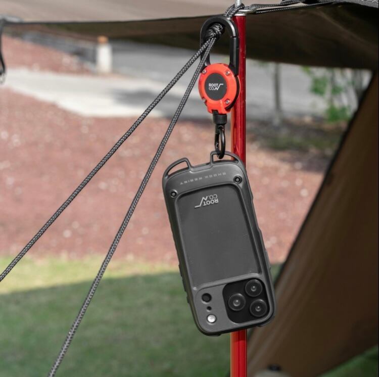米国環境耐性試験「MIL-STD-810H 516.6Procedure IV」の耐衝試験に準拠した耐衝撃性能はもちろん、下部に搭載されたカラビナループにはカラビナなどを直接ケースに取り付ける事ができるので、バックパックやショルダーバッグ・ベルトループ等にiPhoneをそのまま装着、登山やアウトドア時の落下防止が可能です。