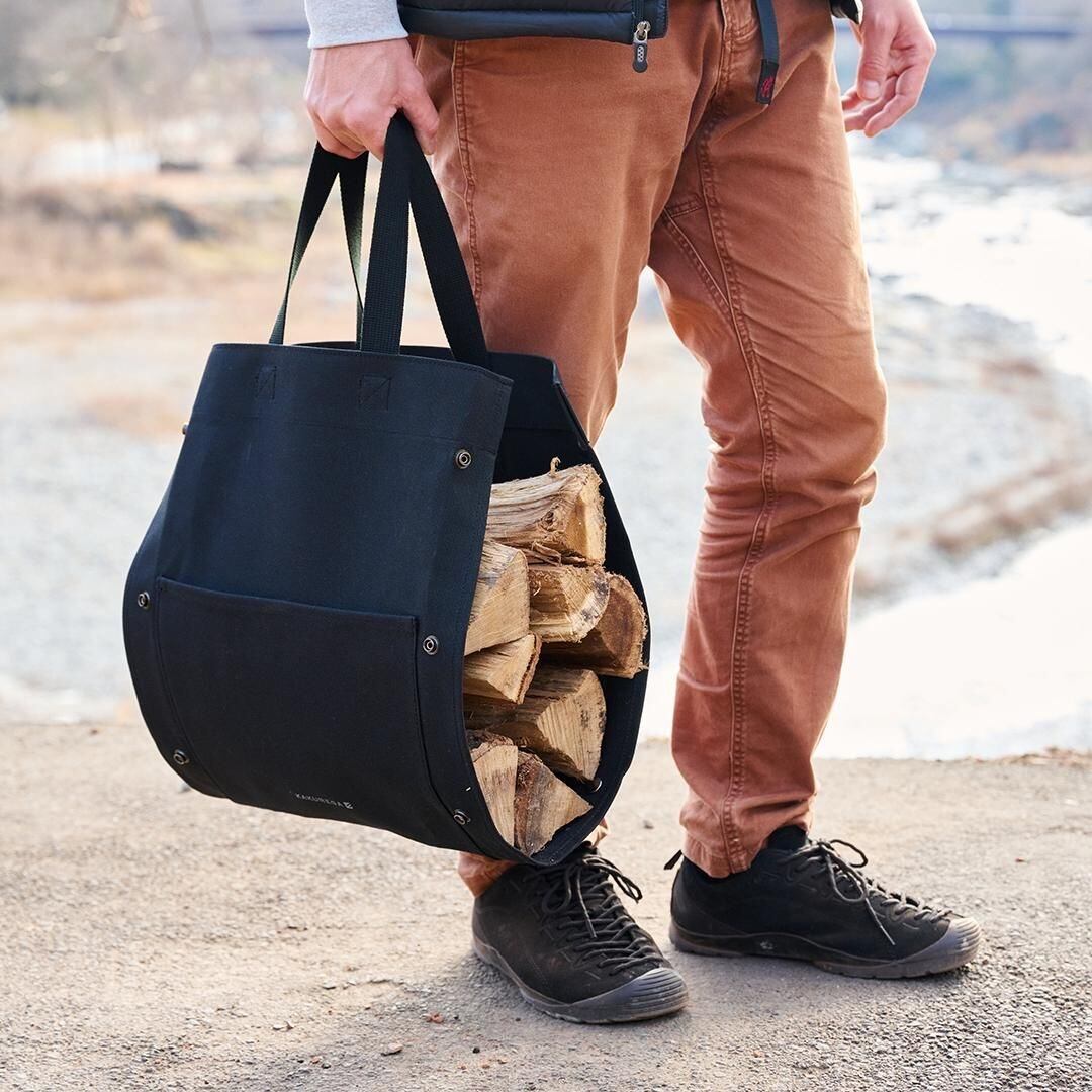 付属の専用バッグはサイドのボタンを外して開くことで薪バッグに早変わり!状況に合わせて収納バッグと薪バッグを使い分けていただけます。
