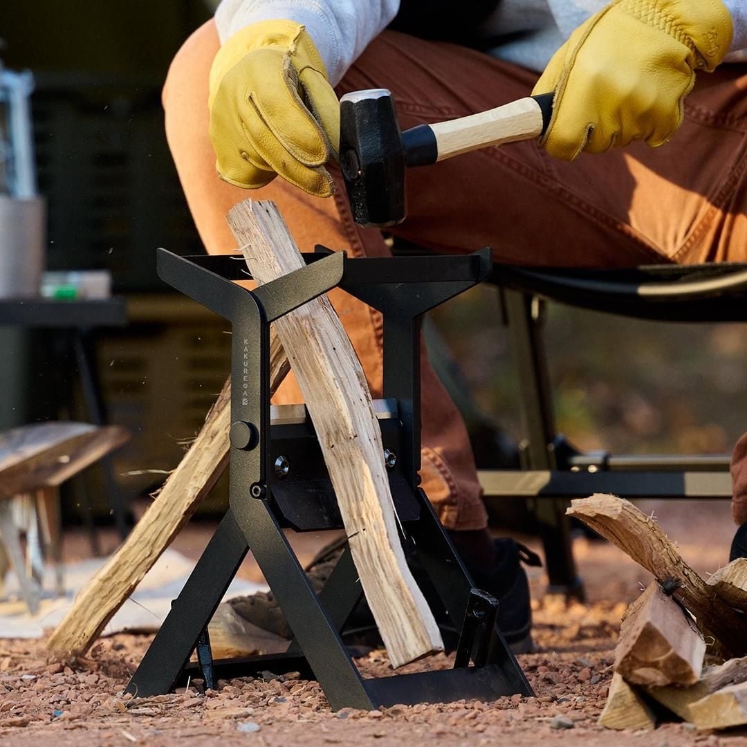 ナイフでのバトニングや、斧やナタなどの刃物を使って薪を割る作業は慣れていない人にとっては大変なもの。薪割り器は便利だけど大きくてかさばりがち。そんな悩みを『KAKUREGA 折りたたみ薪割りスタンド KOBIKI』が解決します。