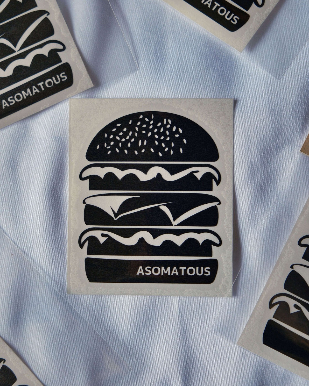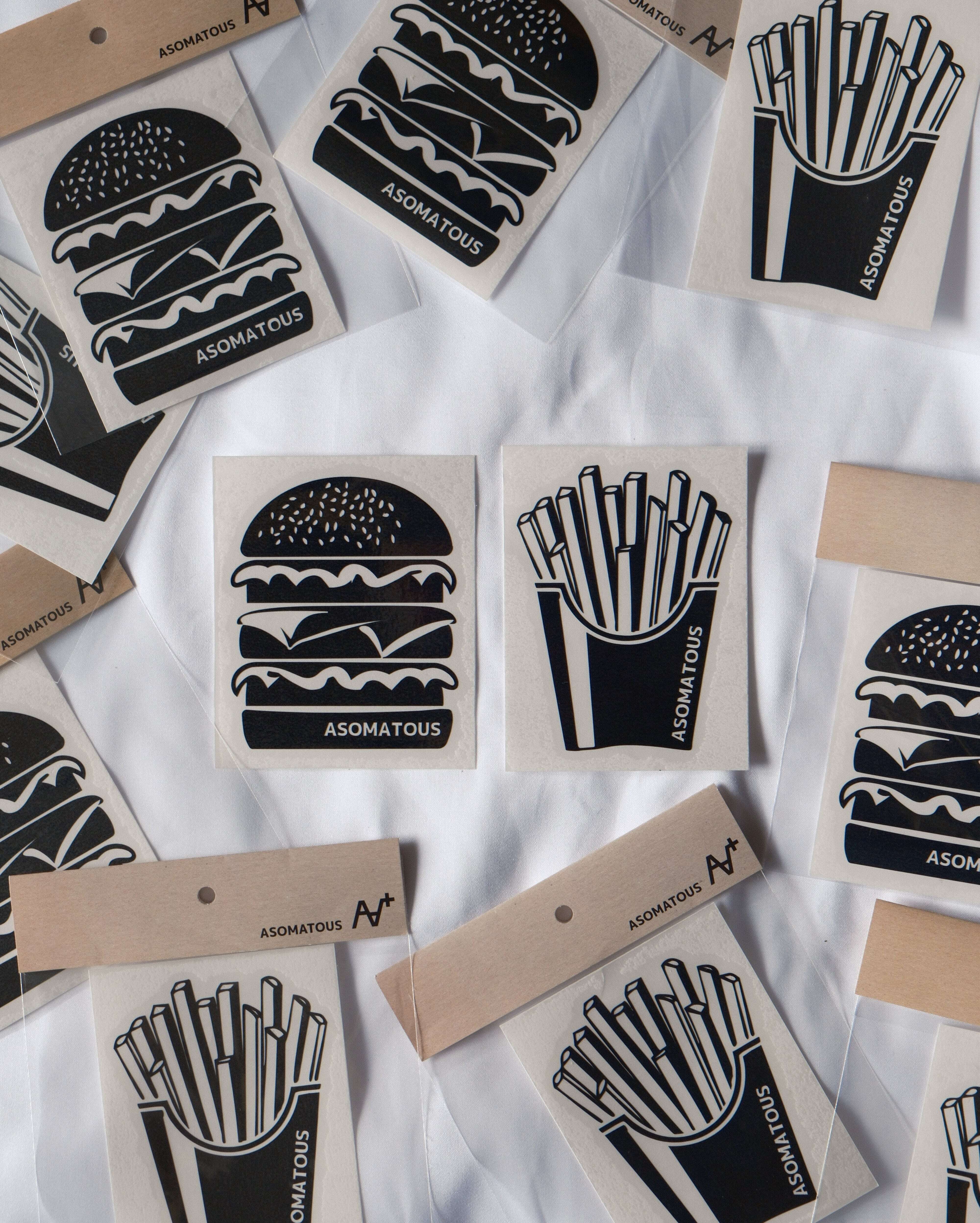 ASOMATOUSのアイコニックなデザイン「ハンバーガー」と「フレンチフライ」のカッティングステッカー。