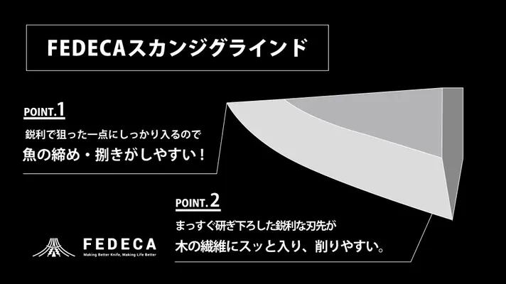 ■特長②:削り・捌きにたえる「FEDECAスカンジグラインド」