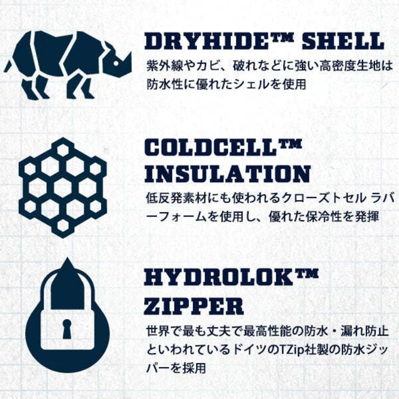 ホッパーシリーズはハードクーラーと比べ、非常にポータブルで軽量なデザインと構造で気軽に持ち運びできます。100%リークプルーフ、ハイドロロック社の防水ジッパーを使用することで空気や水が漏れず、防水性、耐穿孔性で頑丈な作りです。