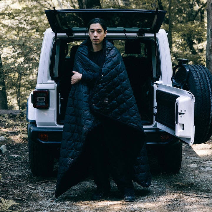 リビング使いからアウトドアシーンまで、幅広い使い方ができるブランケット。