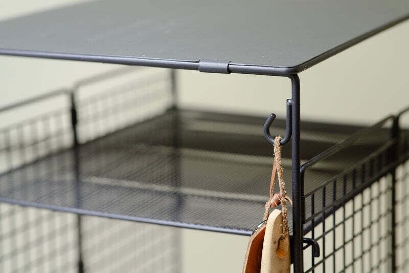 四隅には小物など必要に応じてハンギングできるフックを設置。