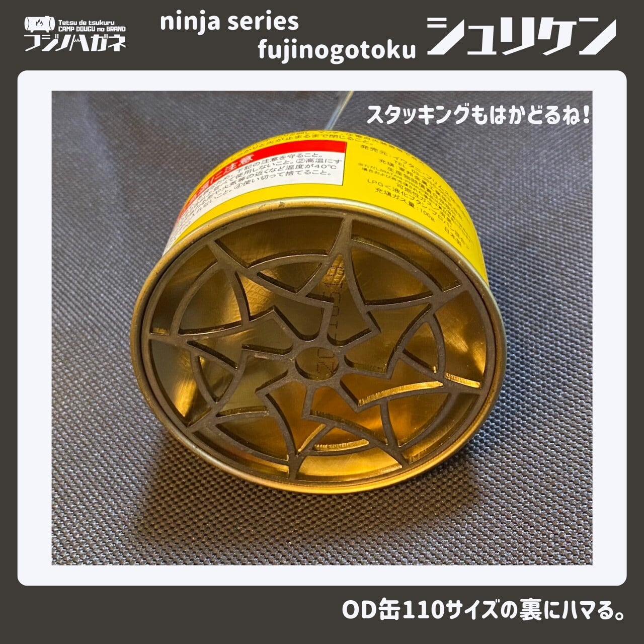 サイズは OD缶の110サイズ、裏のくぼみにジャストフィットの