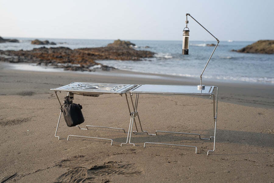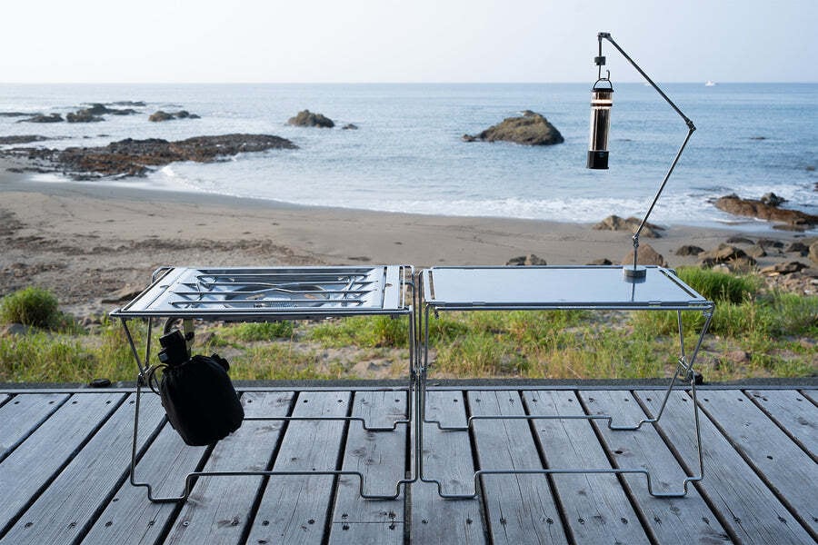コードユニットの連結・スタック性をそのままに、バーナーやコンロが収まるサイズ設計。バーナーをスマートに組み込み、マルチフレームテーブルのトップボードもフィットする拡張スタンドです。