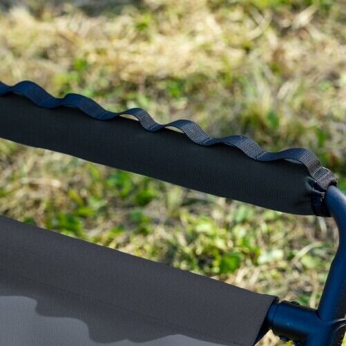 座り心地を重視した広い座面で、長時間の使用も快適です。 ハンドルにはギアを取り付けられるベルトループを装備し、機能性も抜群。