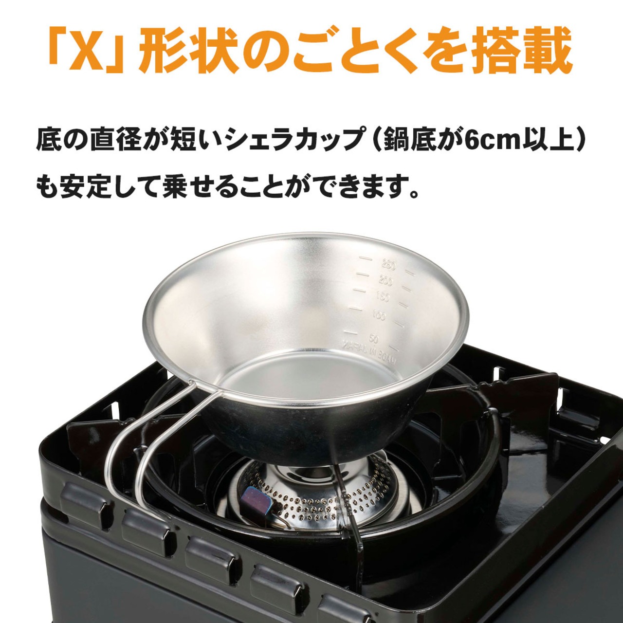 「タフまるJr」よりシェラカップも安定しておける「X」形状ごとくです!