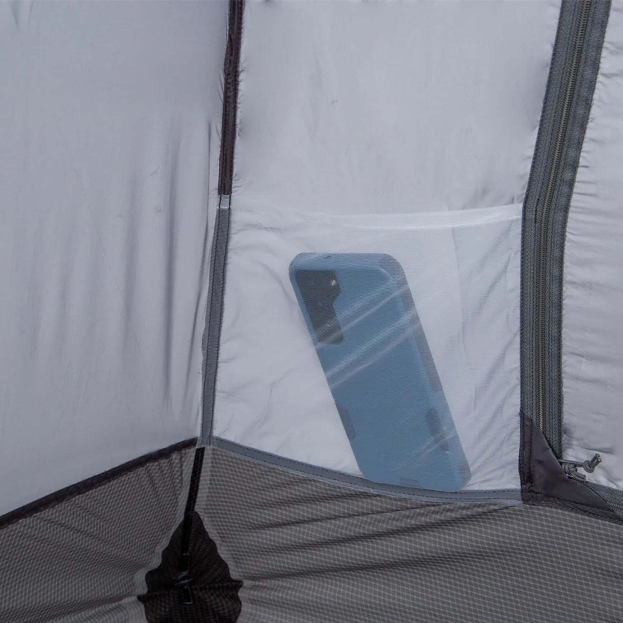 Nightlight Pocket™: 天井のポケットにヘッドランプを入れるだけで、ブルーライトを抑えた柔らかな光がテント内を均一に照らすランタンに早変わりします。