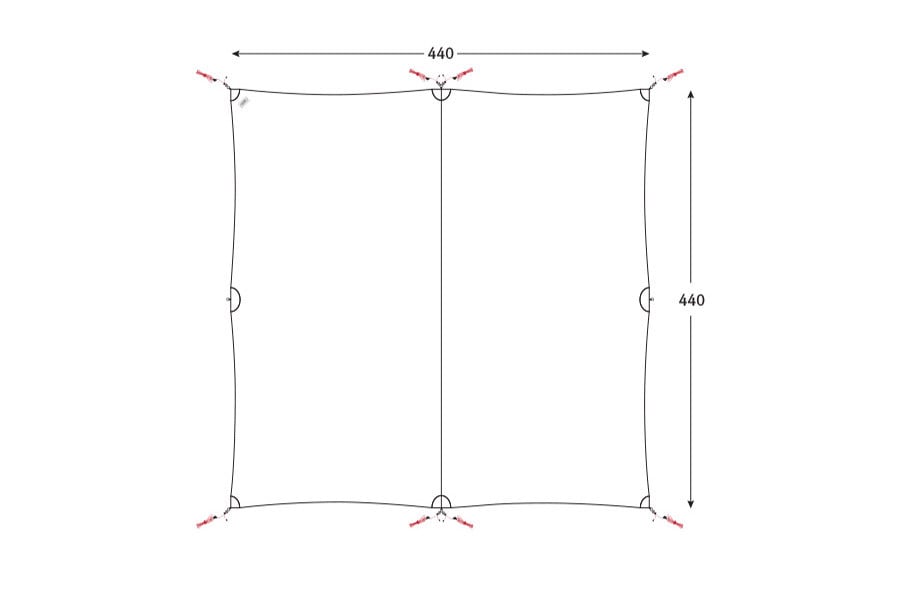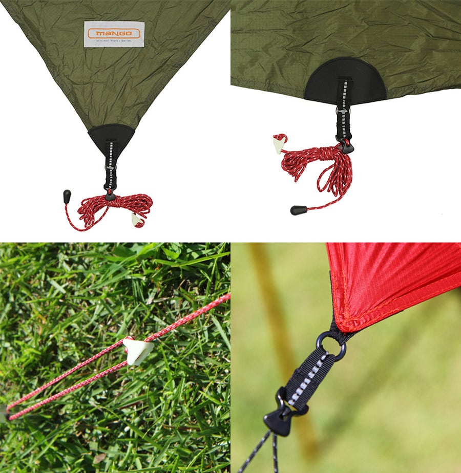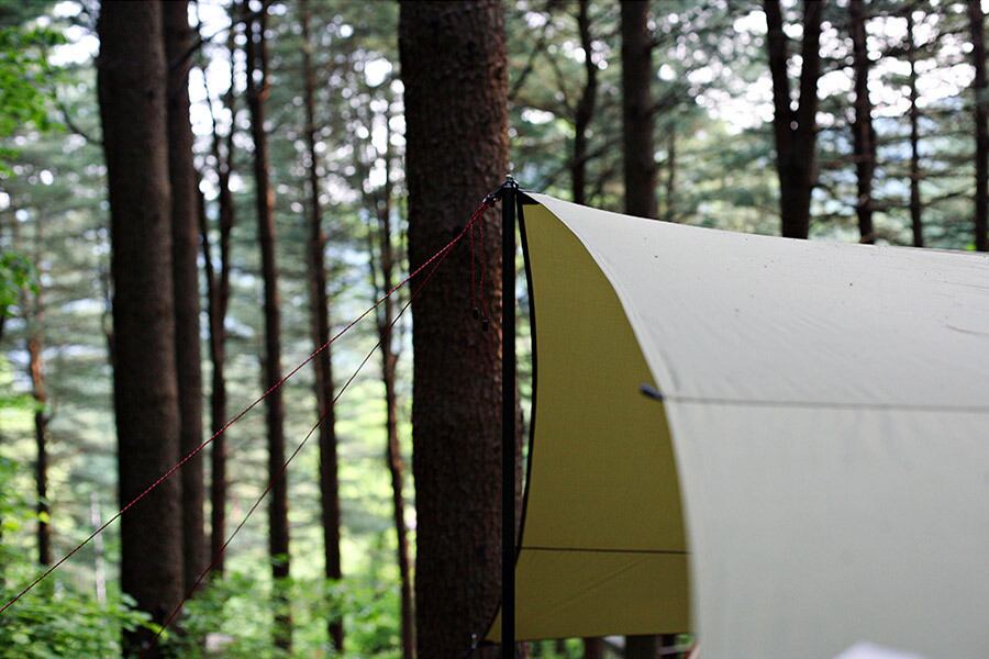 ミニマルワークスのマンゴシェードマジェスティは4m40cmの正方形サイズのシリコンコーティングされた軽量レクタータープです。