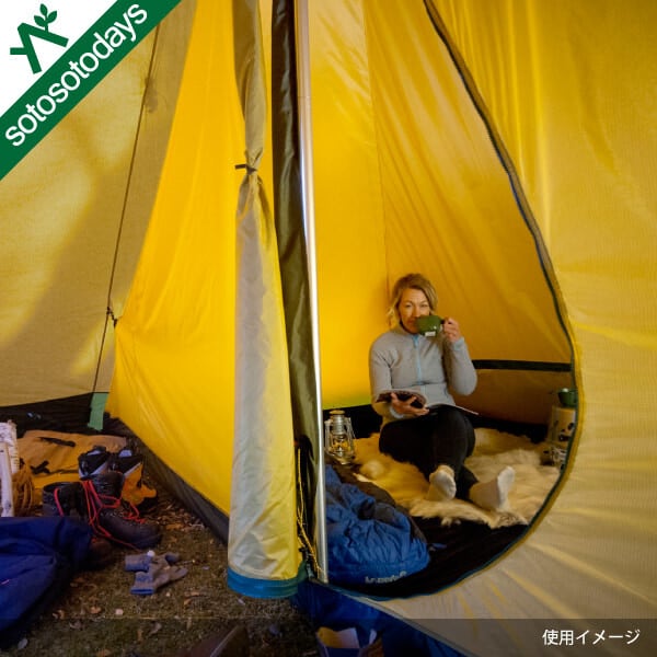 2ヶ所のエアインテークを備えているので風通し良く、テント本体に装着したまま撤収も可能です。Light素材のテントで結露にうんざりしている方にお勧めです。また空間を分けることが出来るのでお子様連れのファミリーにも安心です。