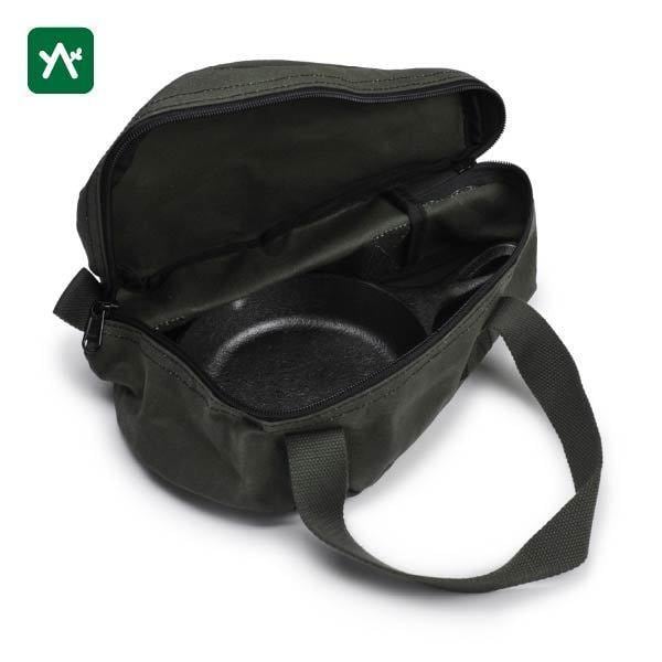 特徴:丈夫な生地なので、重たいスキレットを重ねて収納することができます。