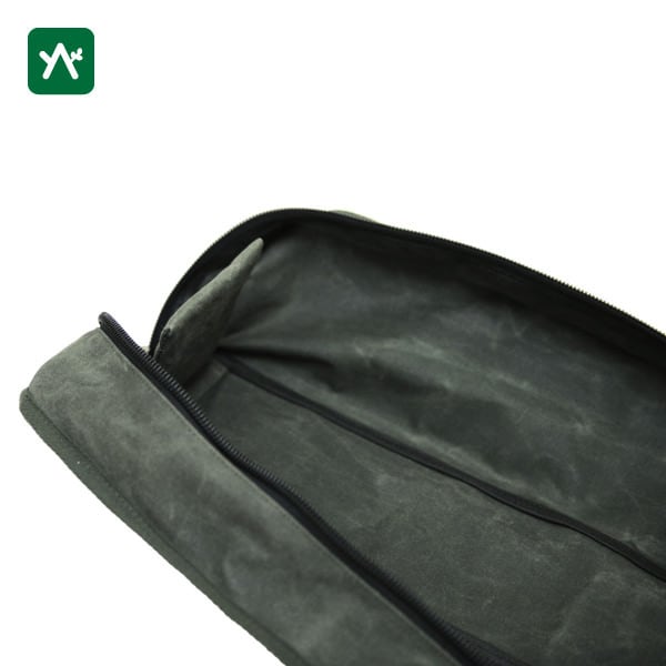 長尺のポールが入るサイズ。開口部が大きく、ダブルジップで出し入れしやすい。
