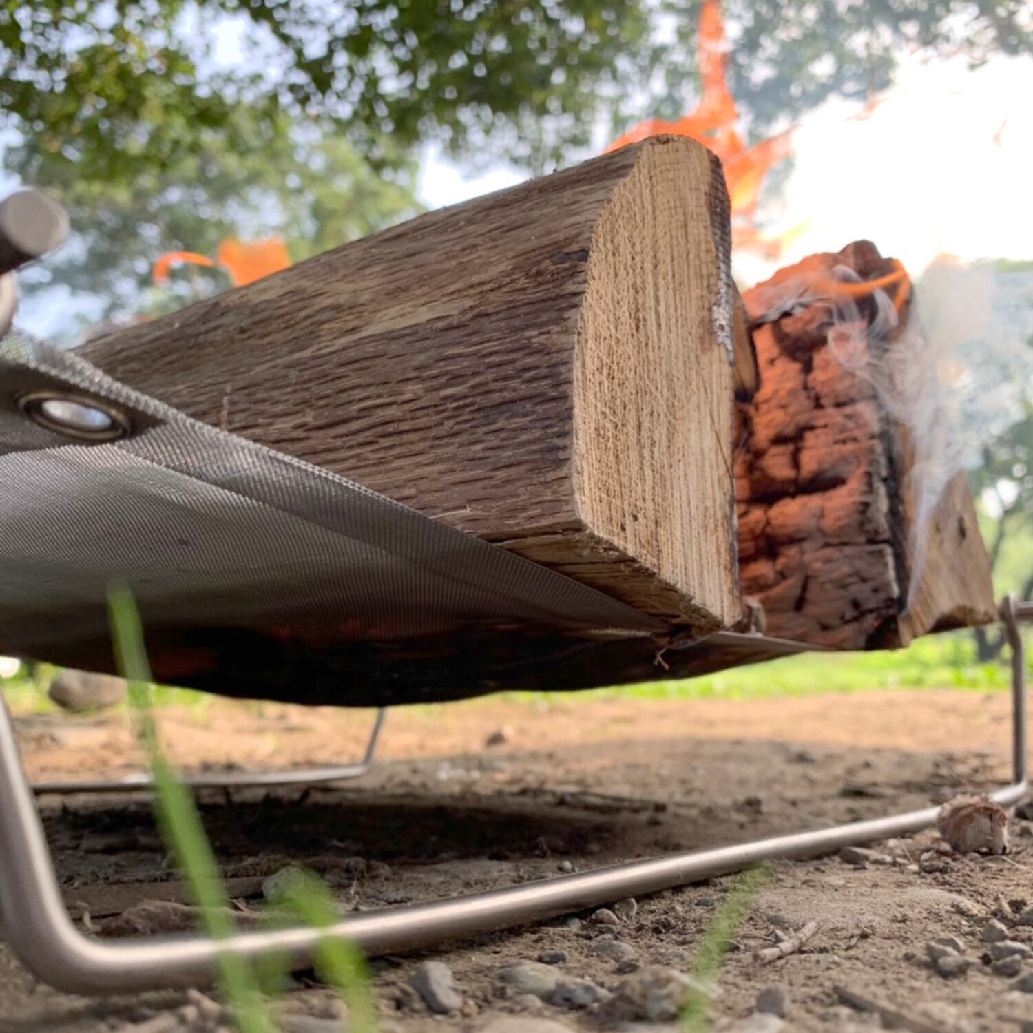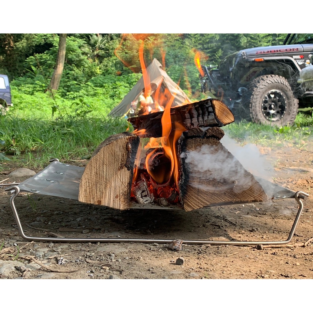 大地へのダメージを最小限に抑える、ブッシュクラフターご用達の「直火」に近い地上高の焚き火台です。