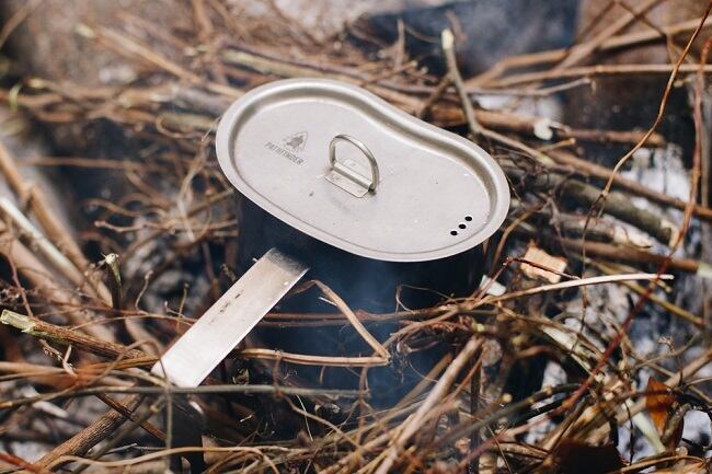 カンティーン、カップ、ボトルストーブがスタッキングされたセット品です。