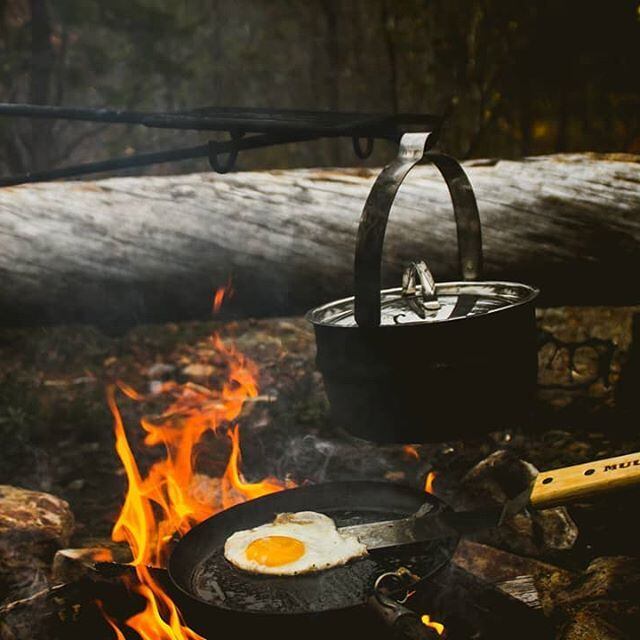 または焚火なら均一な熱を発する熾(おき)の上でフライパンを加熱してください。