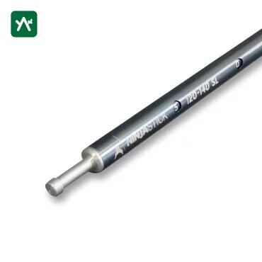 ●120cm-140cmの5段階の5cmピッチで長さ調整が可能。先端はタープのハトメやループから外れにくい形状です。サイドにはNINJA STICKの刻印入り。