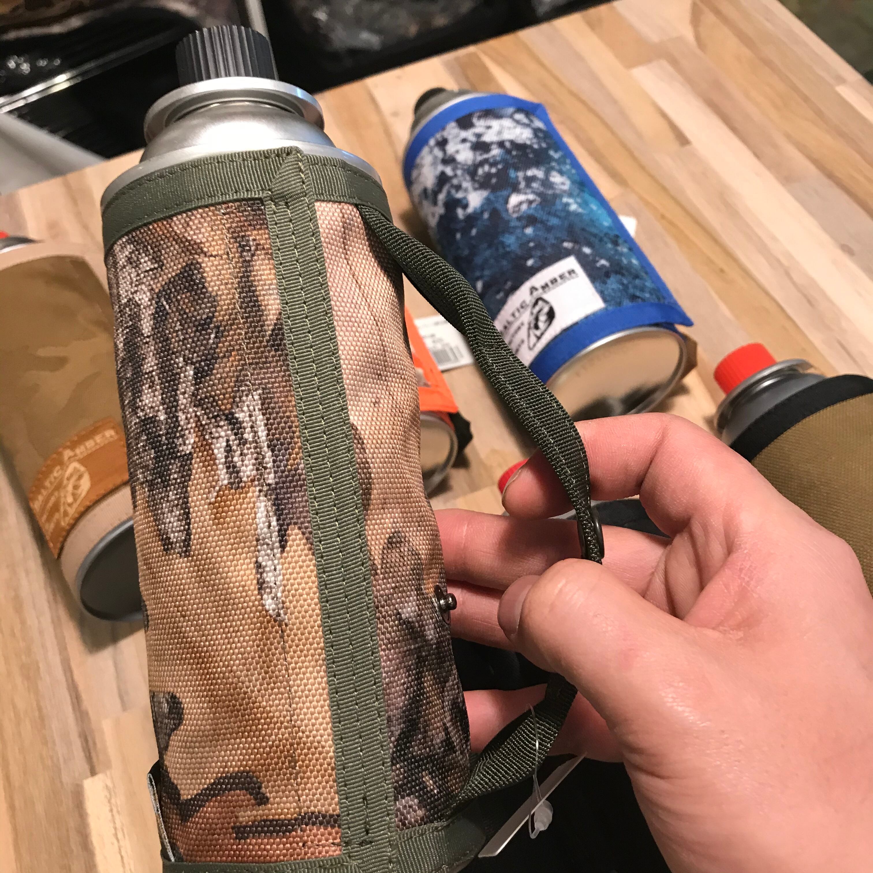ハンドル付きのガス缶カバー