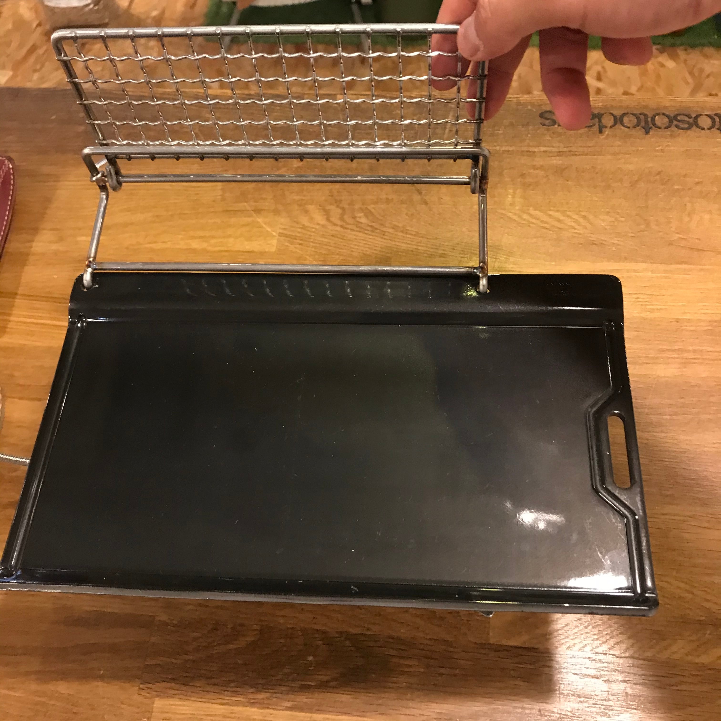鉄板の周囲には溝があるため、食材から出た汁が流れ落ちるのを軽減します。