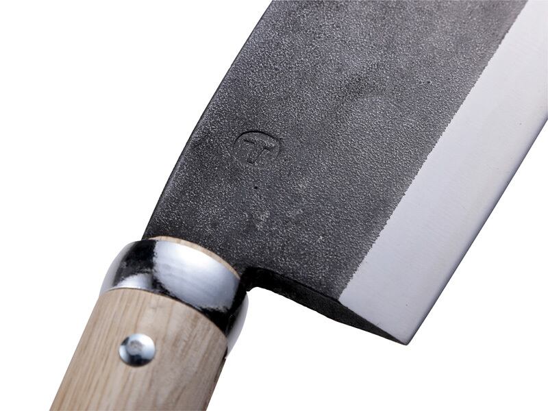 北関東で育った硬い樫を用いた柄は、長めに設計され、両手で持つことも。