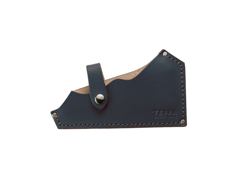 山の稜線をイメージし、カットしたデザインの専用革ケース付き