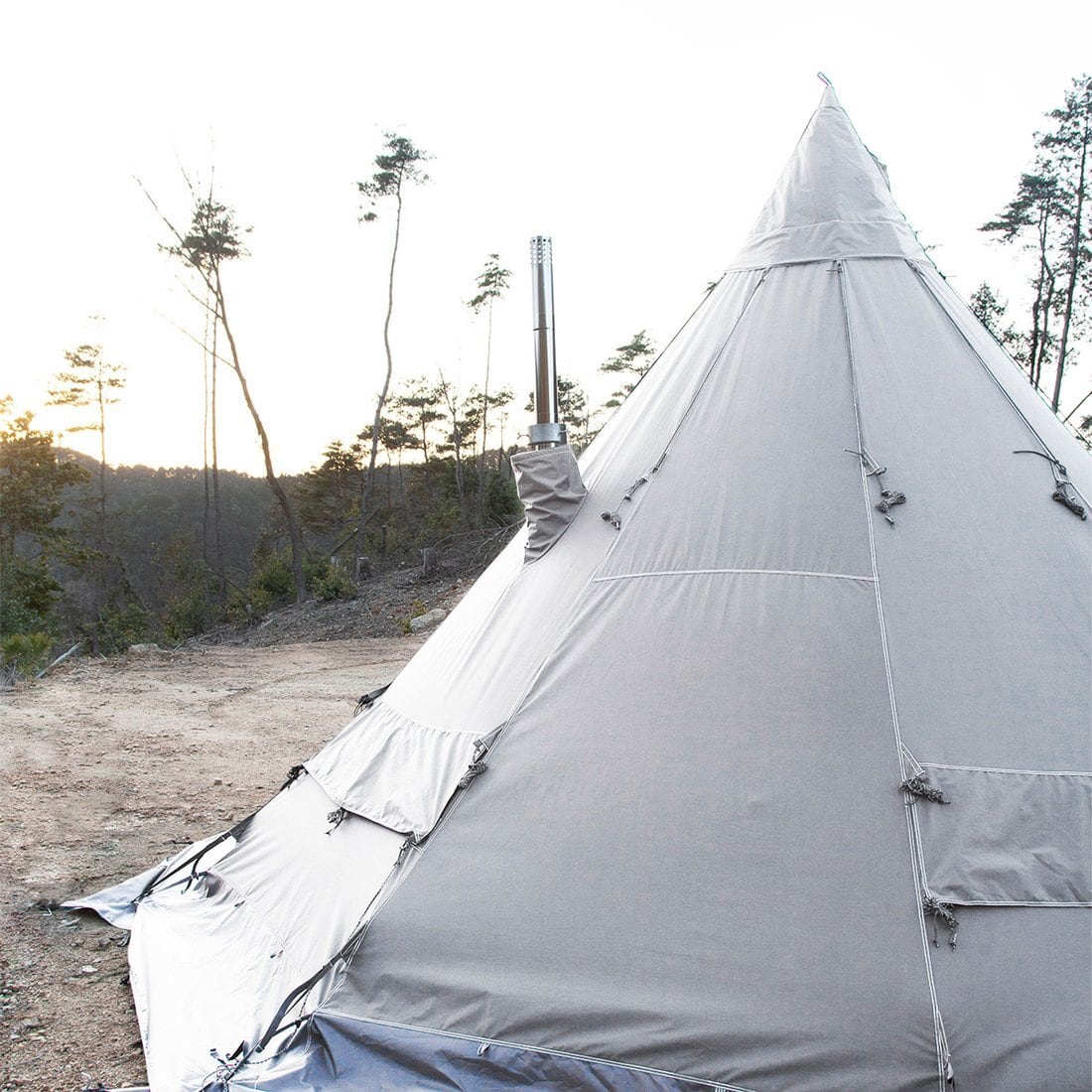 煙突の出し口はトップとサイドのチムニーホール(煙突出し口)に加え、4ヶ所のローサイドベンチレーションの合計6ヶ所。煙突の出し口を複数設けることで、一般的なテントでは構造上煙突を出す位置が限定されたり、工夫が必要であった排気問題を解消。さまざまなメーカーの薪ストーブを、ストーブの形状やシーンに応じてお好みで配置が可能です。