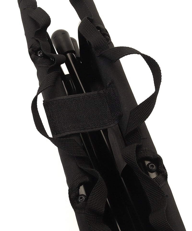アルミフレームを採用し、軽量ながらもしっかりとしたつくりで、持ち運びにも便利。使用しないときは折り畳んで薄くコンパクトになり、収納や携行にも便利です。
