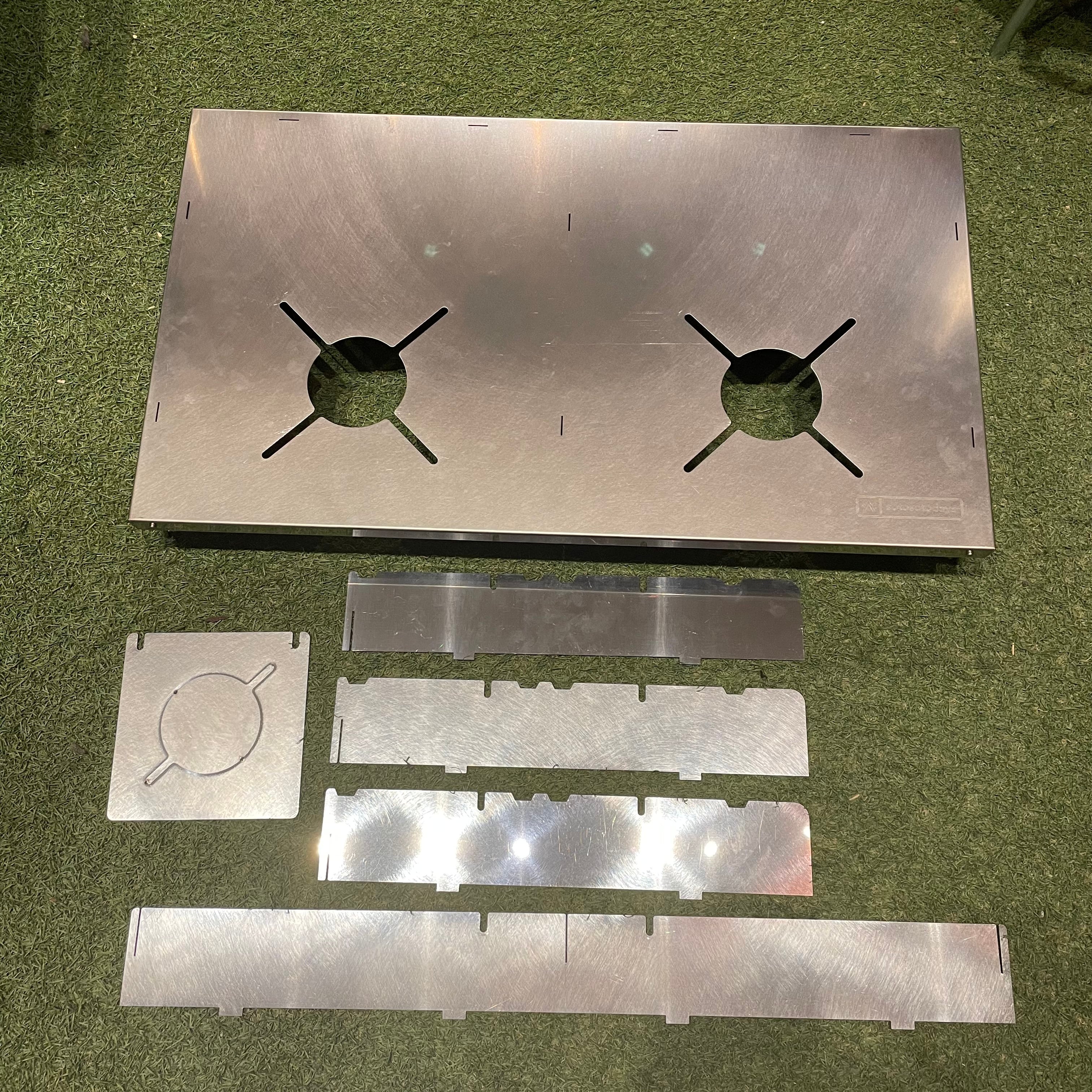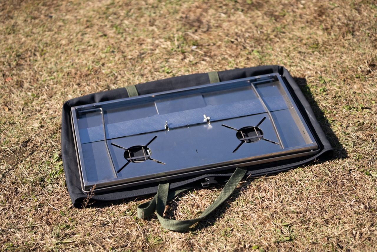※フィールドラックに乗せて使用する場合はレギュレーダーストーブやフュージョンの脚がズレますので、必ず別売のステンレス天板Ⅱ、ステンレス天板ハーフ、sotosotodaysオリジナルステンレスプレートを裏返しにして使用ください。