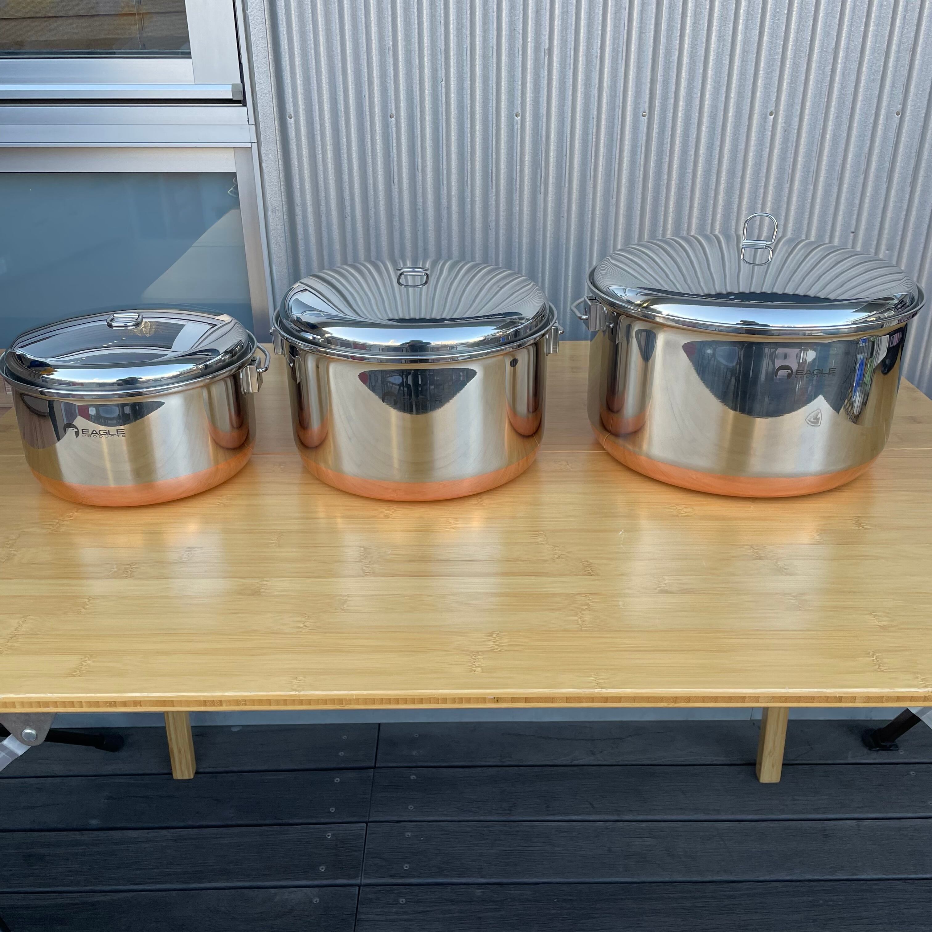 ステンレス製で、底部には熱伝導の優れた銅メッキ加工が施されています。