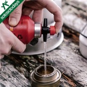 フタはセーフティバルブになっており、赤いツマミを回してボタンを押し下げることで弁が開きアルコールを注ぐことができます。(ポリエチレン製)