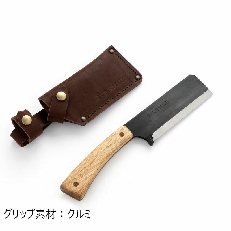 刃の形状は両刃仕様となっており、焚き付け用の薪割作業や細工、バトニングに重宝します。