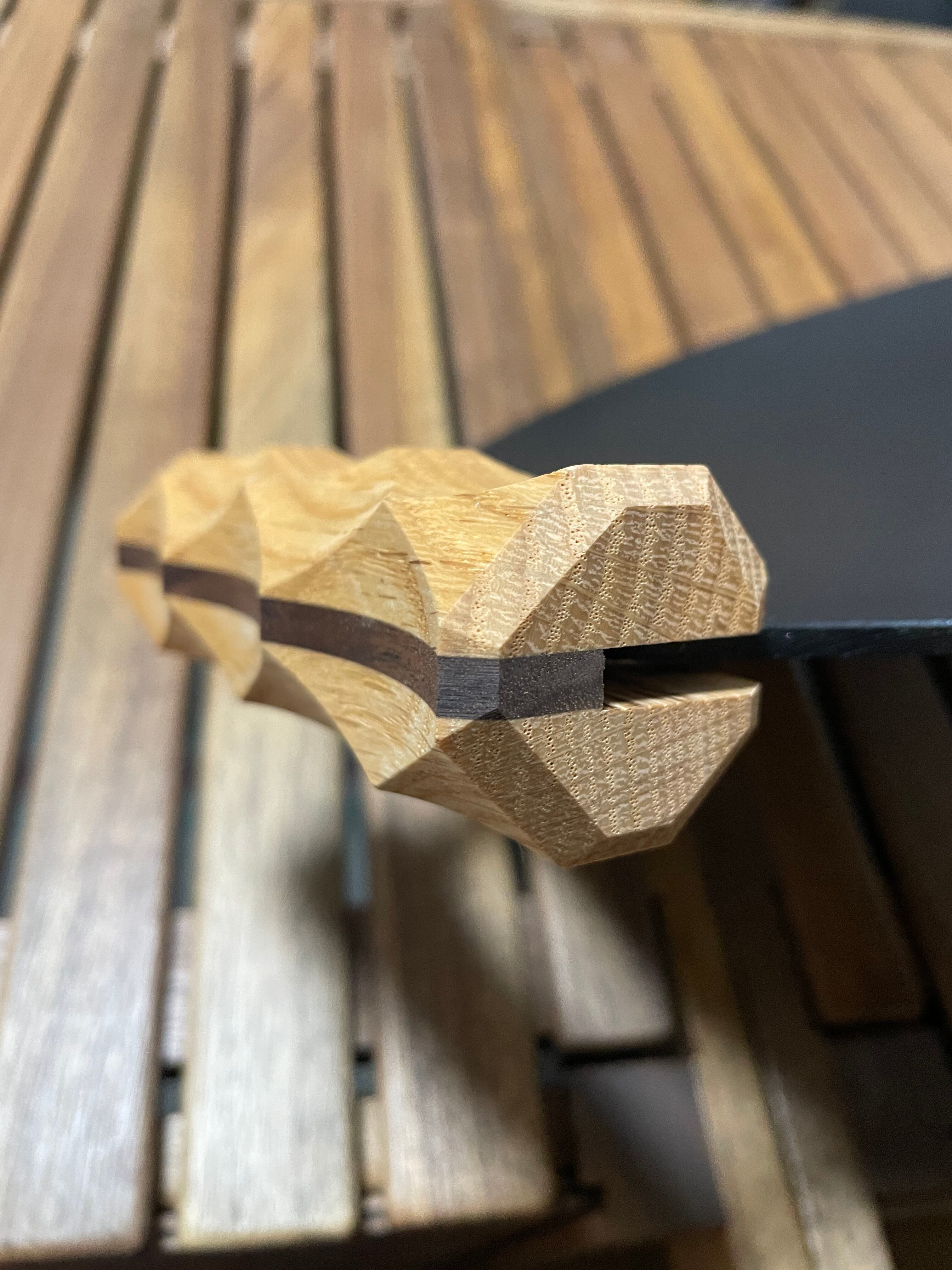寄木を施した高級木材を名栗加工(なぐり加工)した