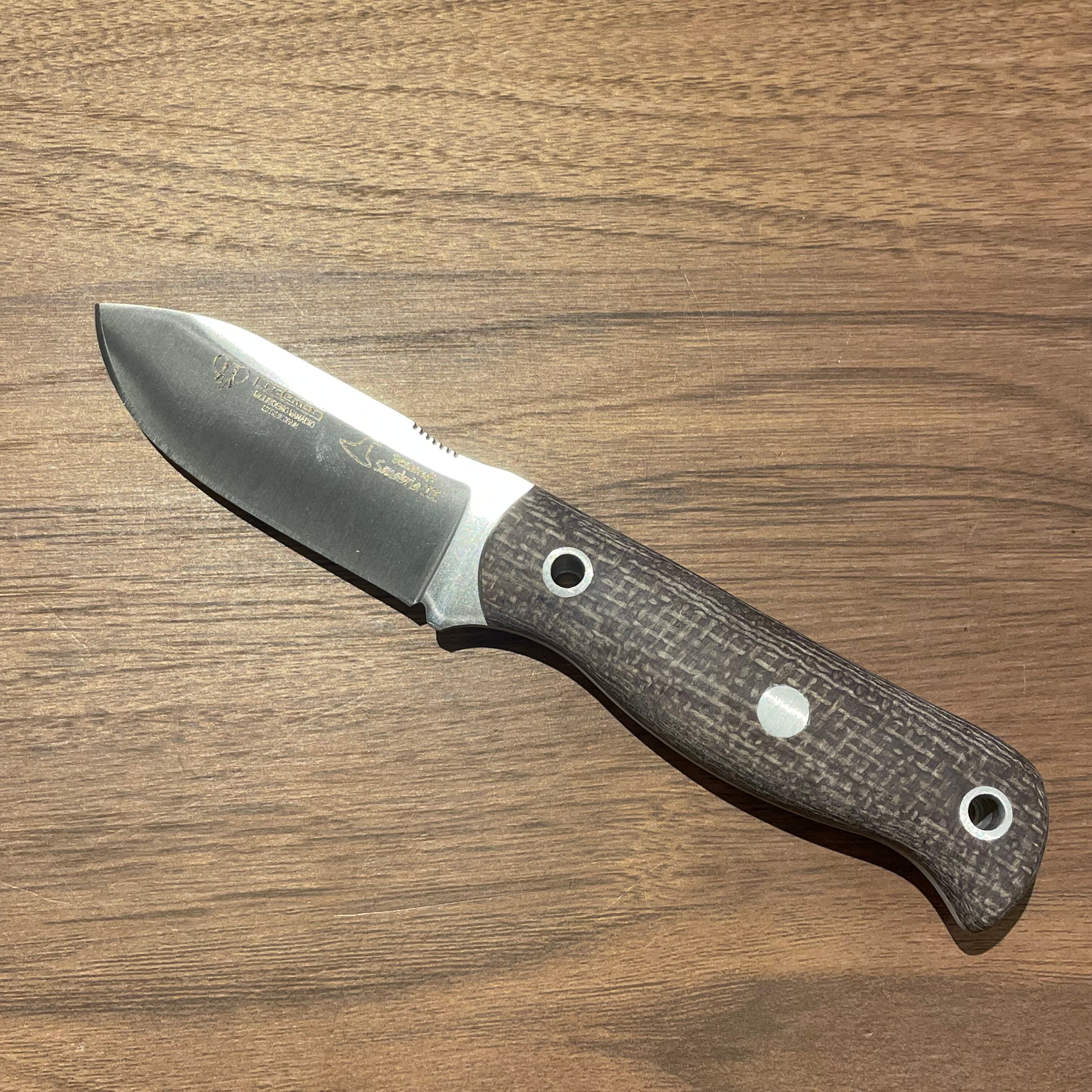 手の平サイズと大変コンパクトですが、刃厚3mmのフルタングナイフです。