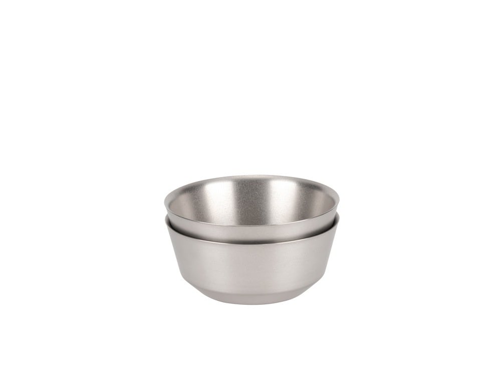 保温、保冷力に優れた中空二重構造のスタッキング可能な純チタン製ボウル。