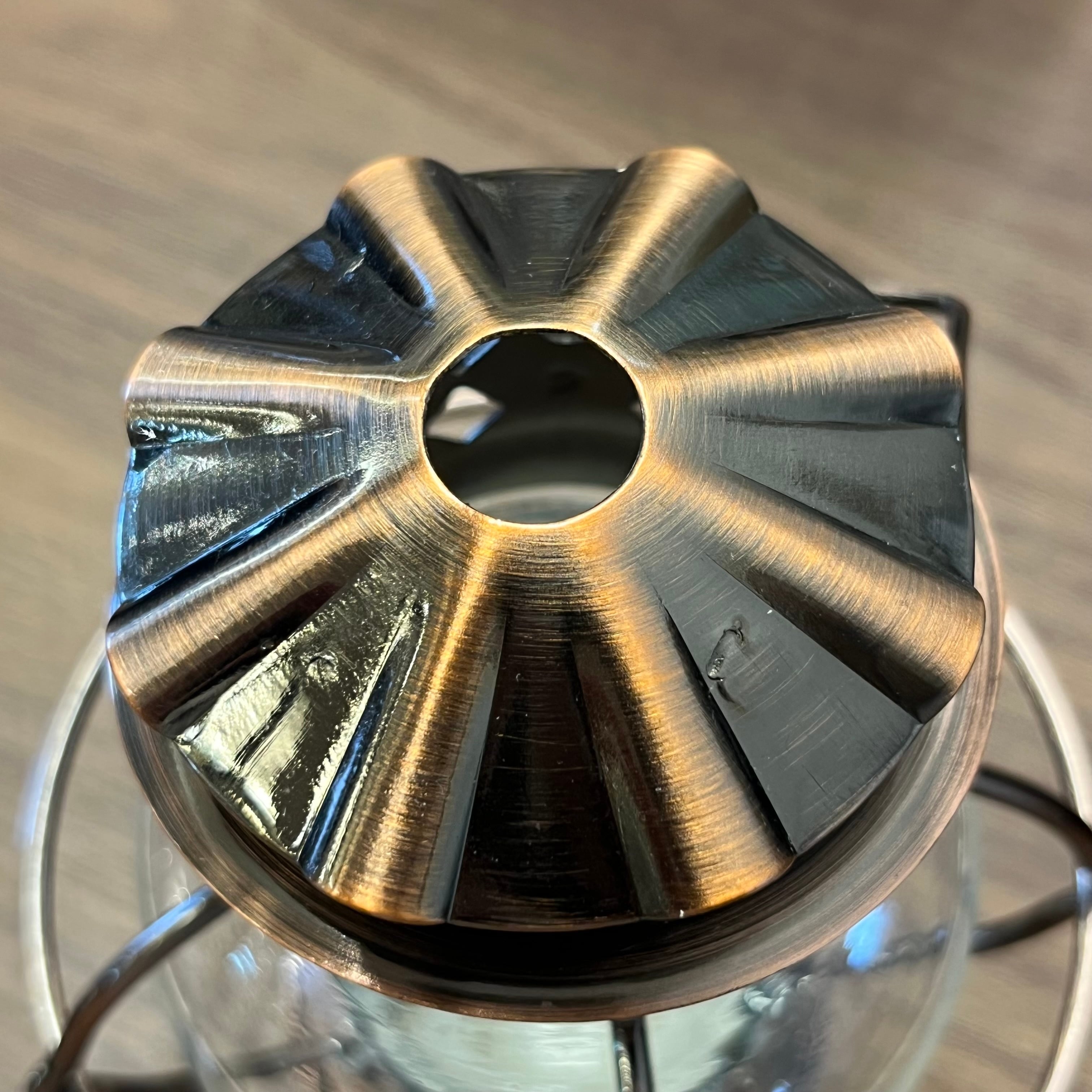 古い外国の映画に出てきそうなレトロな形で、特に丸いガラスの部分が懐かしさと暖かみを感じさせます。