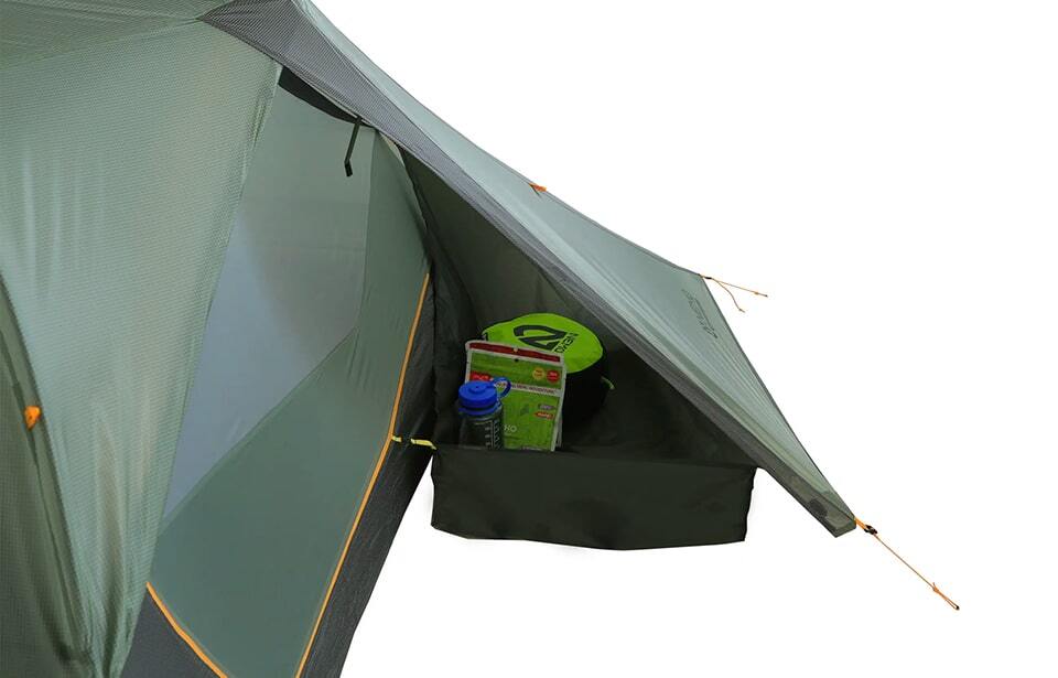 目立たないカラーやヘッドランプをテント内の照明に変えるナイトライトポケット、