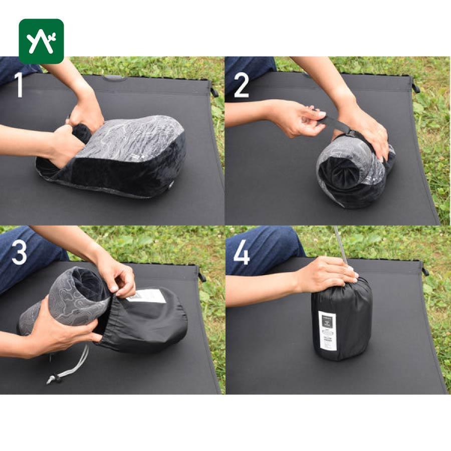 5050WORKSHOPのPACKABLE PILLOWは低反発で頭に馴染むように沈むのでずれにくく、アウトドアでもスッキリした目覚めを体感いただける枕です。