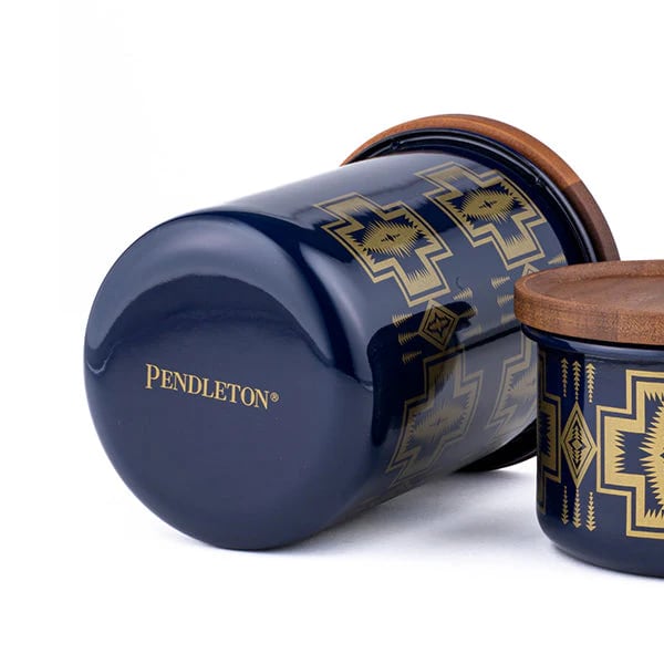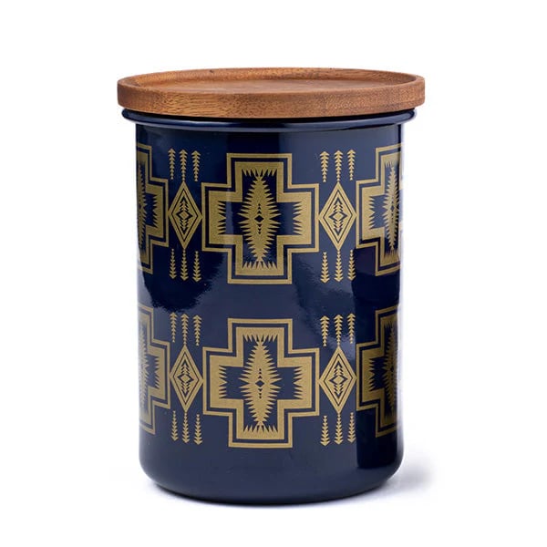 PENDLETON ペンドルトン エナメルキャニスターL FH111 はネイビー×ゴールドの上品な色合いが印象的なペンドルトンパターンを使ったホーロー製のキャニスターです。