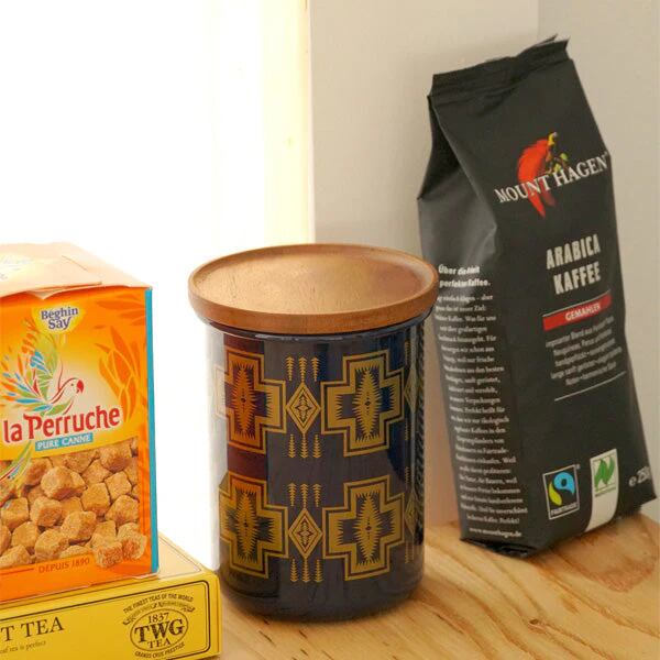 ネイビー×ゴールドの上品な色合いが印象的なペンドルトンパターンを使ったホーロー製のキャニスターです。ご自宅はもちろんのこと、キャンプサイトでコーヒー豆や塩などの調味料を短期保管するのにおススメです