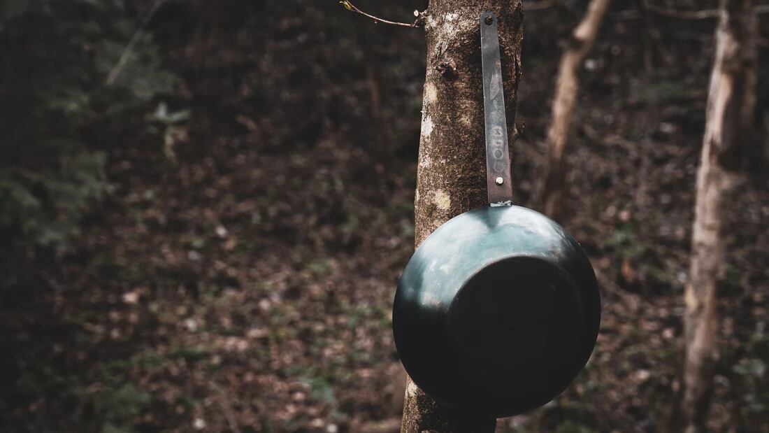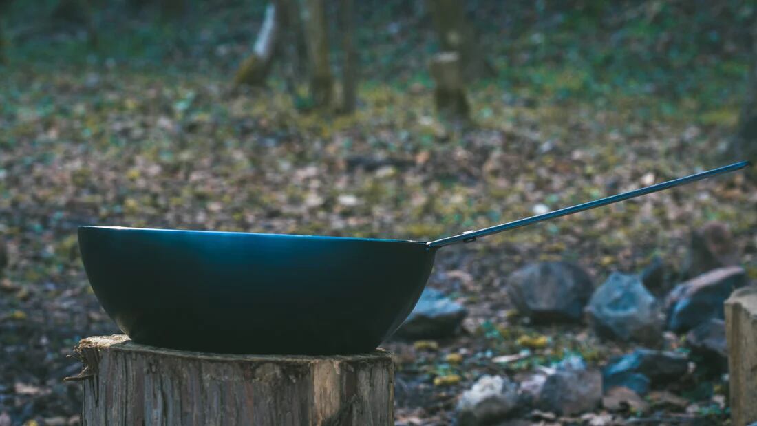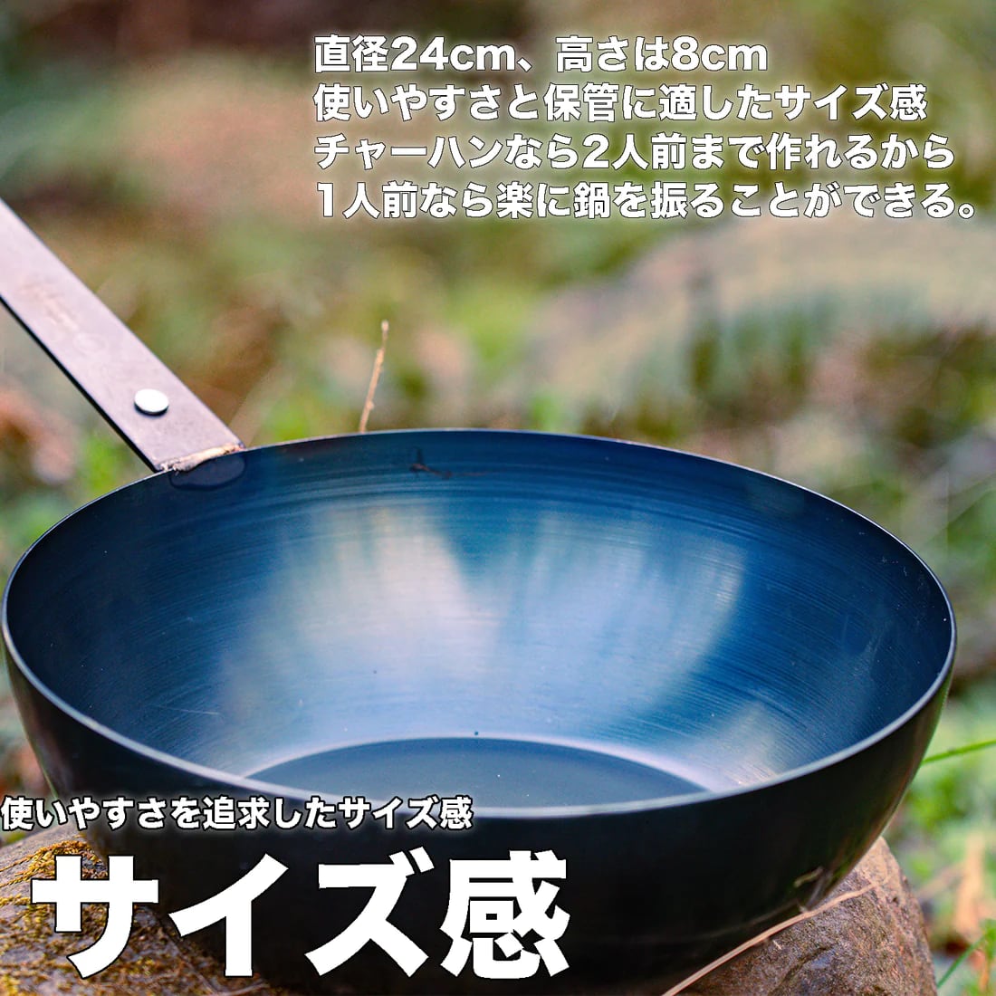 ■焚火料理に適した取手:丈夫な鉄製で熱くなりにくい長さの取手