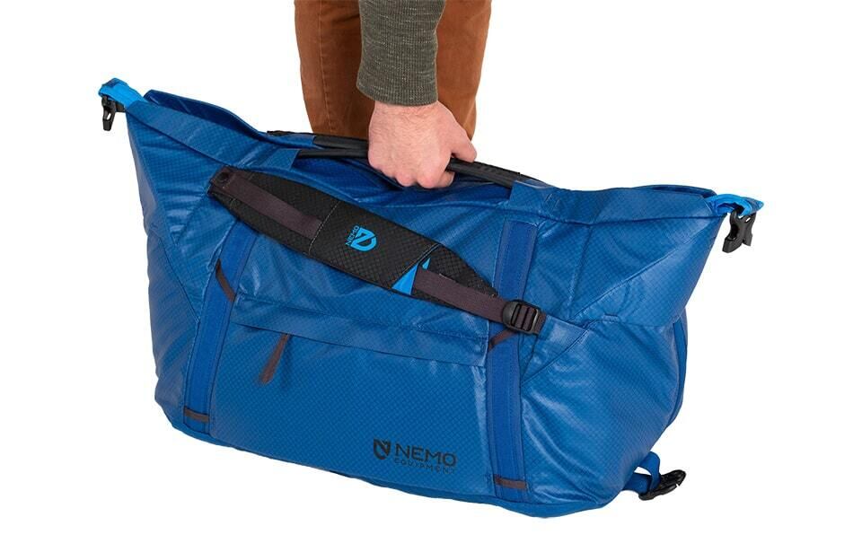 荷物の多い時にはトートバッグハンドルを使用することで、容量を大幅に増やしながらギアを整理&運搬することができます。